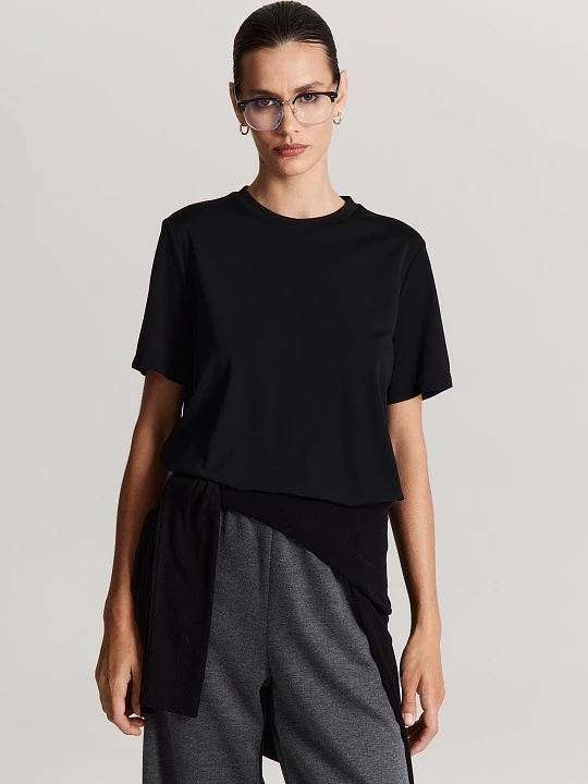 Универсальный черный цвет и премиальная ткань делают модель незаменимой в каждом сезоне.