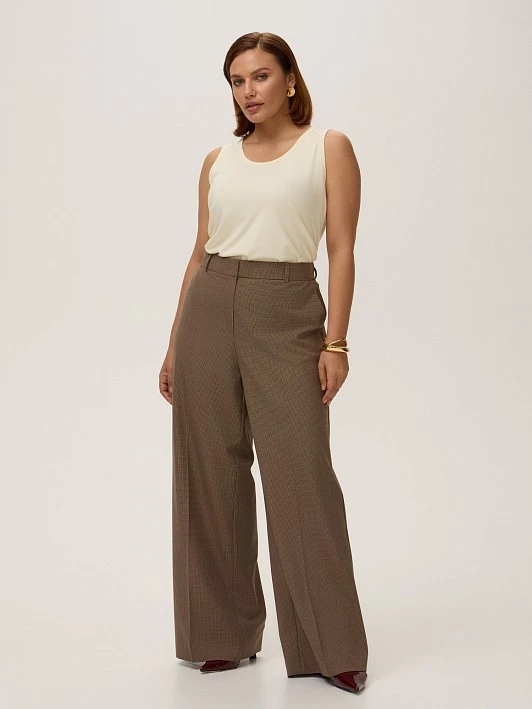 Базовый топ - незаменимая вещь для каждого сезона. Модель с круглым вырезом, без рукава, комфортного облегания, длиной до середины бедра.