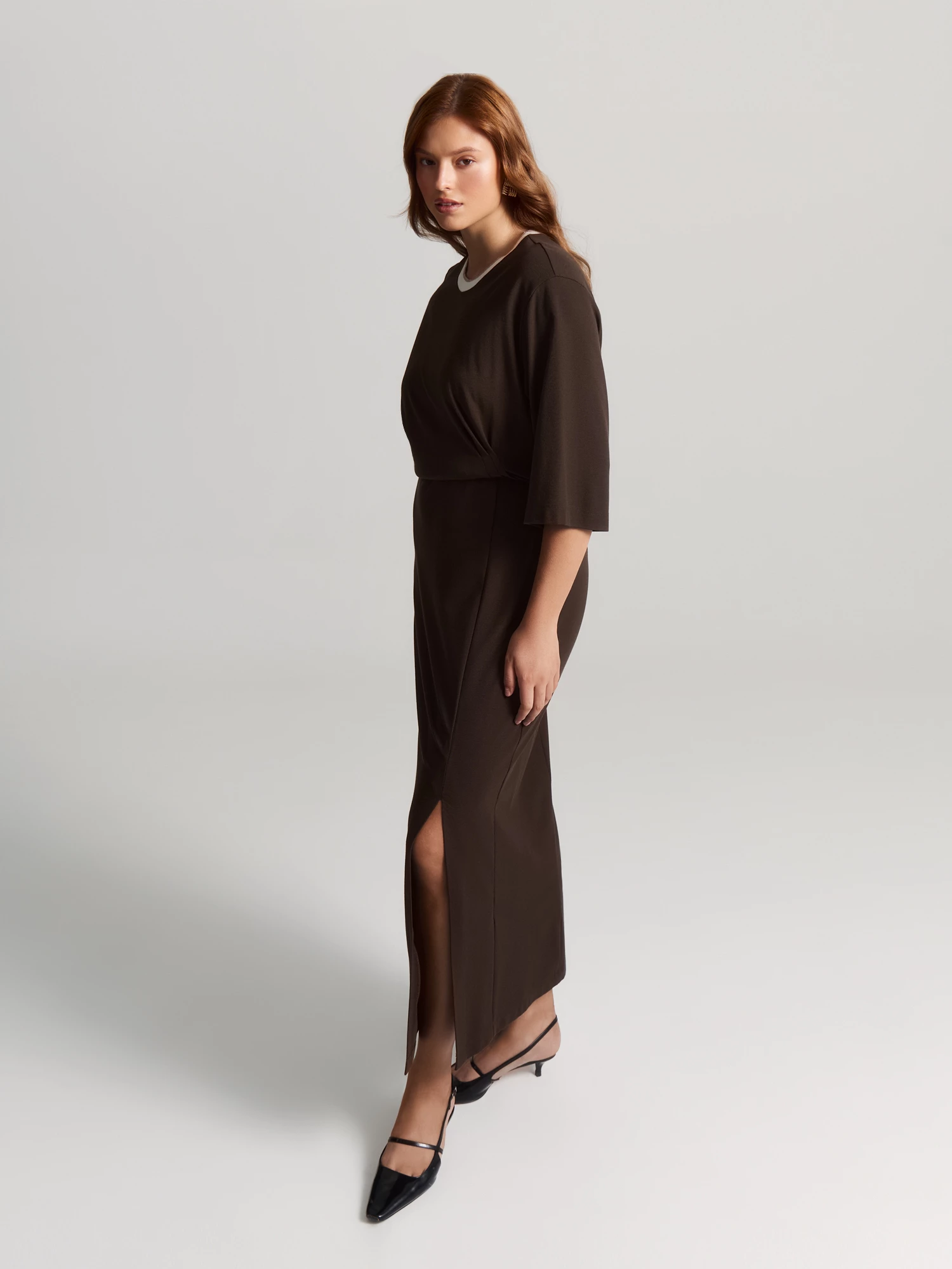 Бренд: LalisЦвет: КоричневыйСостав: Вискоза - 63%, Нейлон - 31%, Спандекс - 6%Артикул: BL1758K5Коллекция: AUTUMN2025 LALIS