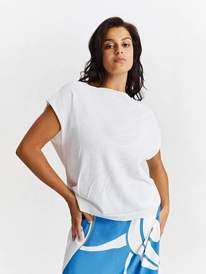 Бренд: LalisЦвет: БелыйСостав: Хлопок - 53%, Акрил - 47%Артикул: BL1385VРазмер на модели: 50Коллекция: ЛЕТНИЕ ИСТОРИИ