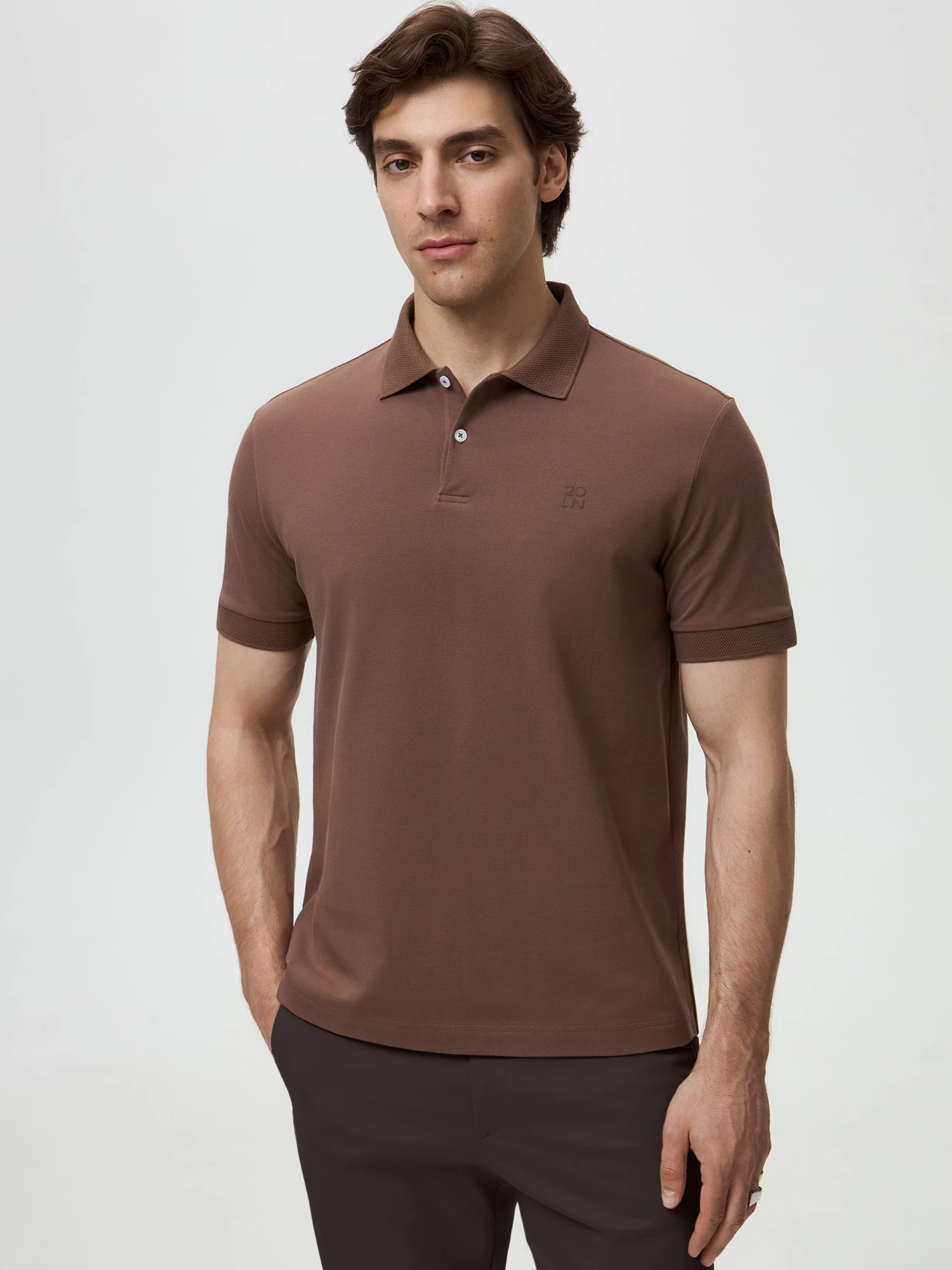 Бренд: 20lineЦвет: КоричневыйСостав: Хлопок - 97%, Эластан - 3%Рост: 187Артикул: ITR0178Размер на модели: 50Коллекция: EARLY FALL
