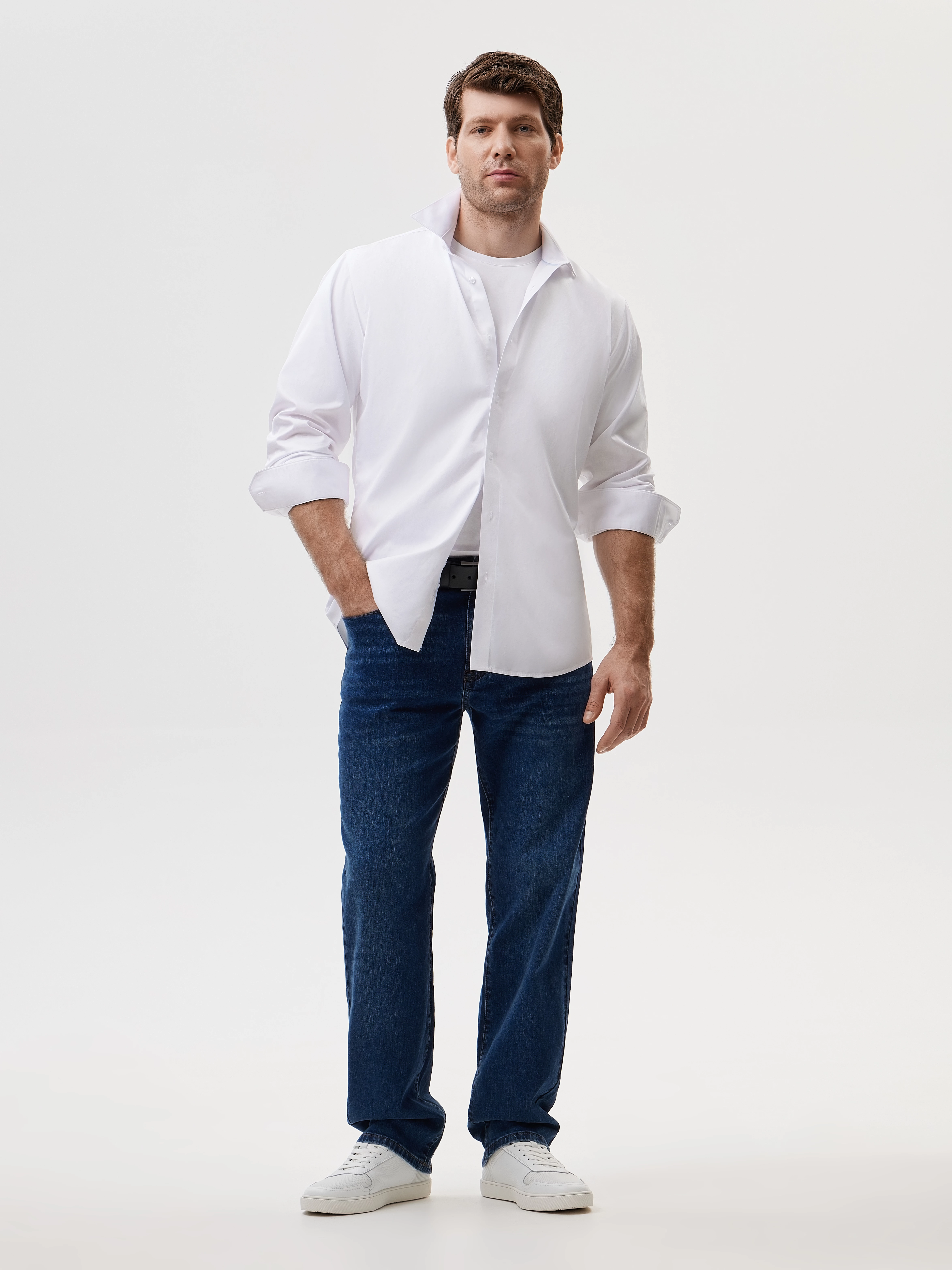 Брюки серого – синего цвета с деликатной голубой клеткой полуприлегающего силуэта. Выполнены из высококачественной костюмной ткани на основе вискозы с добавлением полиэстра, которая является легкой и прочной тканью, сохраняющей свой первоначальный вид на протяжении длительного времени. Модель прямого силуэта, немного зауженная к низу, с притачным поясом со шлёвками под ремень и стрелками. Классический крой обеспечивает комфортную посадку. В сочетании с пиджаком из этой коллекции создадут классический деловой образ.