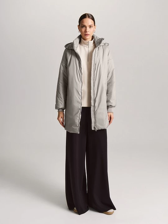 Универсальный прямой крой и привлекательный жемчужный цвет делают куртку актуальной для разных стилей: делового, повседневного, спортивного или смарт-кэжуал.