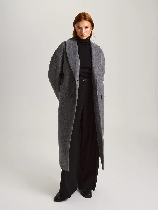 Утеплённое пальто полуприлегающего кроя сшито из мягкой шерстяной ткани, а потому оно хорошо сохраняет тепло, удобно сидит и мягко подчёркивает силуэт. Дополненное утеплителем, пальто прекрасно подойдет для осени и мягкой зимы.