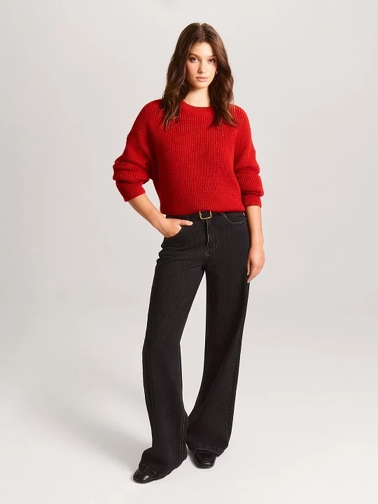 Джемпер в насыщенном красном подойдет для деловой встречи, офиса, прогулки.