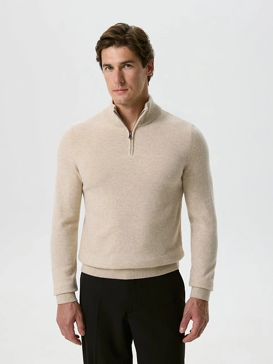Вязаный джемпер прямого силуэта с длинным рукавом и воротником-полустойкой на молнии выполнен в базовом бежевом цвете. Модель станет отличным дополнением гардероба, сочетая в себе стиль, комфорт и высокое качество. Джемпер изготовлен из 100% шерсти мериноса, что обеспечивает ему невероятную мягкость и приятные тактильные ощущения. Шерсть мериноса известна своими терморегуляционными свойствами, что позволяет поддерживать комфортную температуру тела в любых условиях. Она хорошо тянется и не сковывает движения, что делает этот джемпер идеальным для активного образа жизни. Дизайн джемпера предполагает возможность создания силуэта оверсайз, если выбрать размер на один-два больше обычного. Это не только удобно, но и стильно, позволяет выглядеть современно и расслабленно. Вязаные изделия из шерсти мериноса, выполненные на японской плосковязальной машине Shima Seiki, отличаются высоким качеством и долговечностью. Все соединительные швы обработаны на кеттельном оборудовании, что обеспечивает эластичное и практически незаметное соединение. Эта премиальная обработка подчеркивает внимание к деталям и высокие стандарты производства. Стильный теплый свитер с воротником на застежке станет универсальным элементом Вашего гардероба. Он отлично подойдет как для офисной обстановки, так и для повседневной носки или деловых встреч. Вы можете сочетать его с классическими брюками для создания элегантного образа или с джинсами для более непринужденного стиля. Выбирая этот вязаный джемпер, вы получаете не только модный, но и практичный элемент гардероба, который будет радовать вас своим внешним видом и комфортом на протяжении долгого времени.