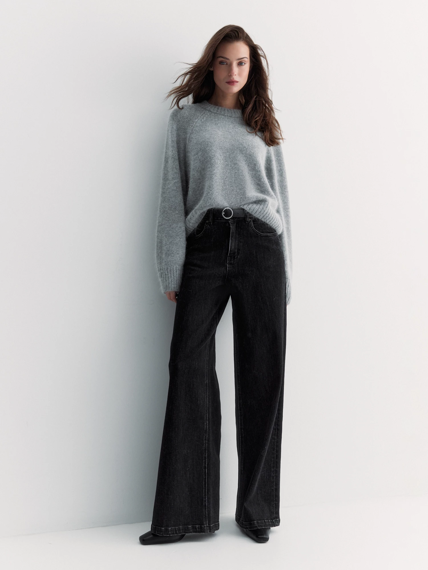 Нейтральный серый меланж с мраморным эффектом позволяет легко сочетать джемпер с любой одеждой.