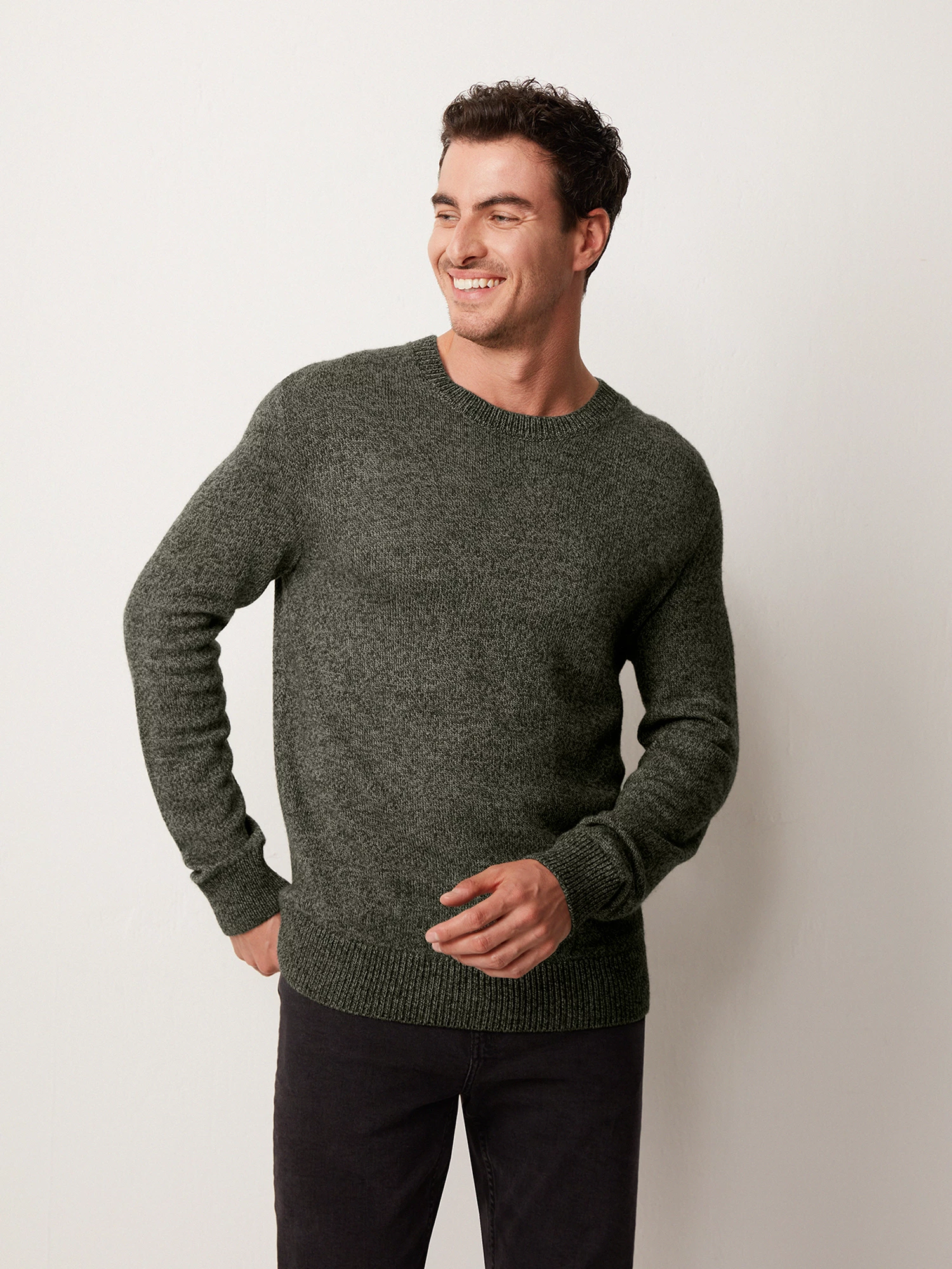 Вязаный джемпер серо-зелёного оттенка с легким меланжем. Мягкая пряжа с добавлением натуральной овечьей шерсти очень тёплая и не деформируется со временем. Базовая модель прямого силуэта, с естественной линией плеча, длинным втачным рукавом и круглым вырезом горловины. Пояс по низу изделия, манжеты и горловина оформлены подвязом в крупный рубчик. Базовый джемпер удобно сочетать как с однотонной, так и с принтованной одеждой.