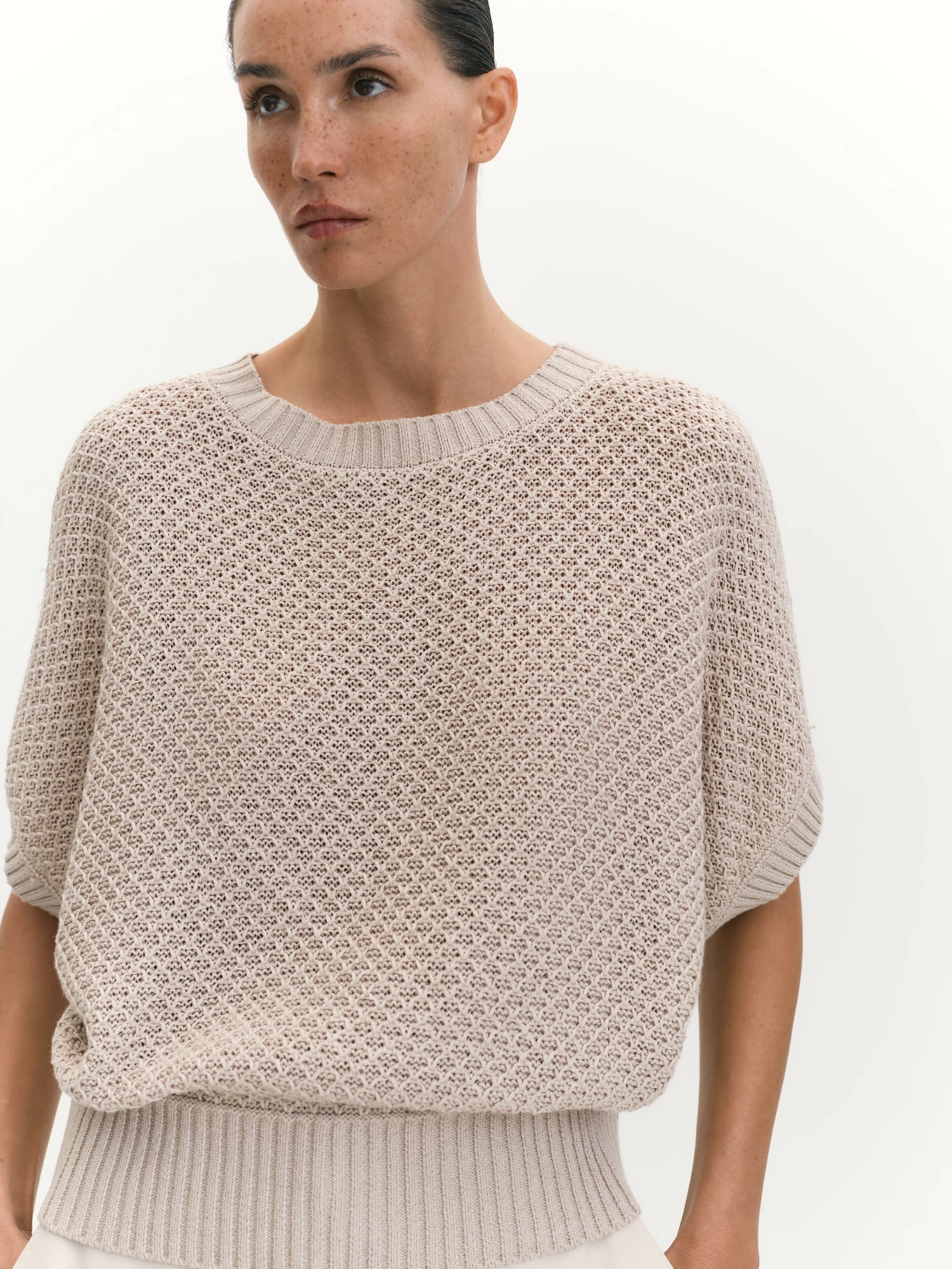 Бренд: ElisЦвет: Бежево-розовыйСостав: Лен - 40%, Хлопок - 33%, Нейлон - 27%Артикул: JM0204VРазмер на модели: 44Коллекция: THE SMILE OF NATURE