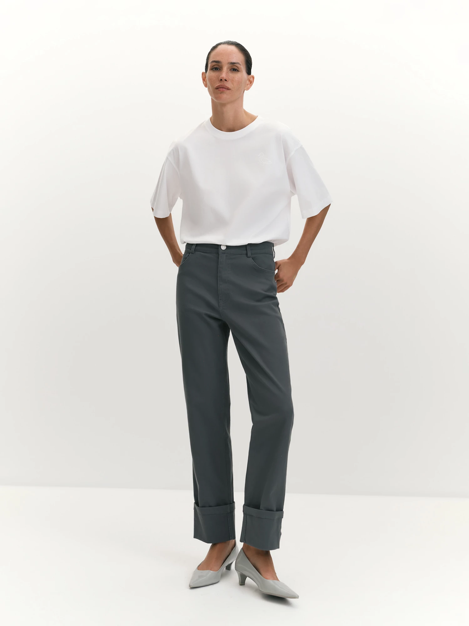 Джинсы в стиле "casual" - сочетание комфорта, практичности и актуального дизайна. Они универсальны для повседневной носки, подходят как для прогулок по городу, так и для активного отдыха. Выбрали ткань из цветного хлопкового денима с добавлением поливолокон и спандекса. Хлопковый деним обеспечивает износостойкость и сохраняет форму даже при активной носке, а спандекс и поливолокна добавляют ему эластичность, делая джинсы более комфортными и подвижными. Благодаря этому джинсы идеально садятся по фигуре, сохраняя форму и обеспечивая свободу движений. Цвет "темный лес" — глубокий, насыщенный оттенок, напоминающий темно-зеленый с легким приглушенным подтоном. Этот цвет менее маркий, чем классический черный, и придает образу слегка неформальный характер, расширяя возможности для стилизации джинсов. Крой джинсов с комфортным заужением и отрезным поясом подчеркивает стройность силуэта, визуально удлиняя ноги. Шлевки, пять карманов, черный контрастный патч и застежка-гульфик добавляют традиционные элементы дизайна, сохраняя при этом удобство и функциональность. Отрезной пояс обеспечивает идеальную посадку по талии, а легкое заужение в области голени сохраняет удобство благодаря эластичному материалу. Эти джинсы — идеальный выбор для тех, кто ценит стиль, комфорт и практичность, сочетая в себе современный дизайн и функциональность для повседневной носки.