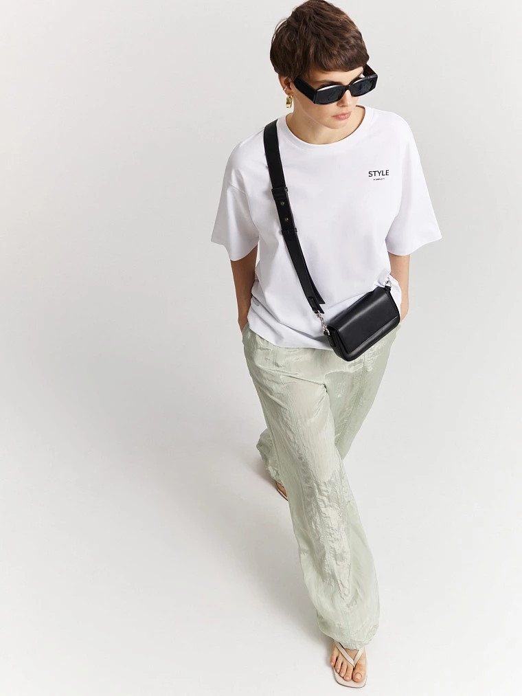 Белая футболка свободного кроя с контрастной надписью выполнена из 100% мягкого хлопка. Материал хорошо пропускает воздух и сохраняет ощущение комфорта на весь день. Модель прямого кроя со спущенной линией плеча отлично сидит по фигуре и не сковывает движений. Лаконичная футболка отлично сочетается с любыми брюками, джинсами или шортами, что делает ее идеальным выбором для создания городского образа любой сложности.