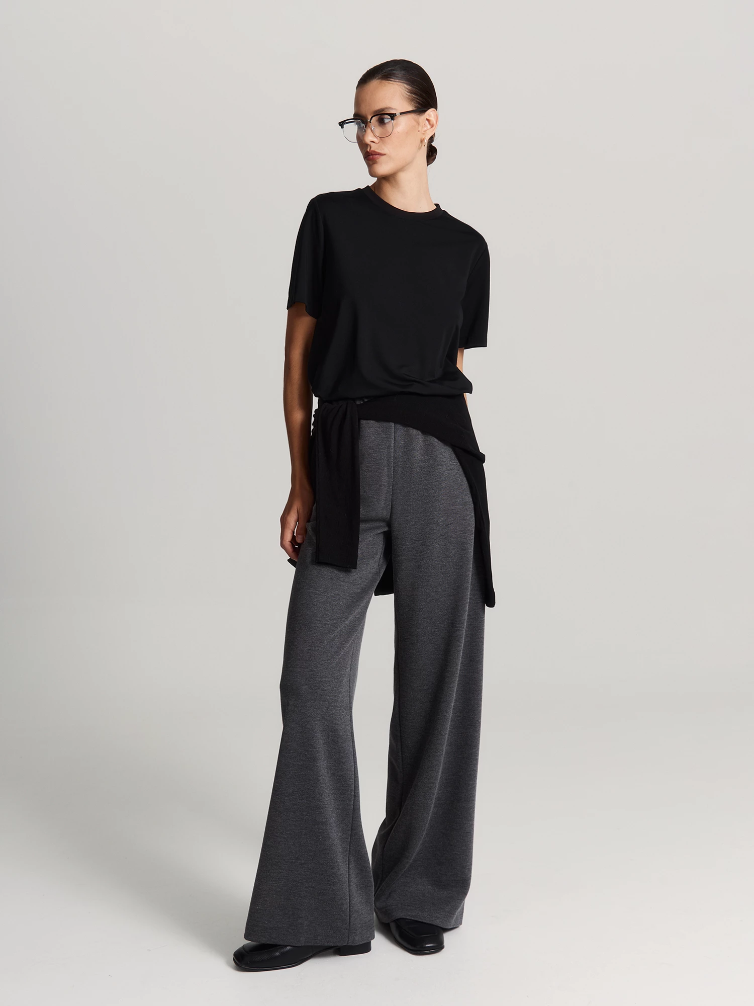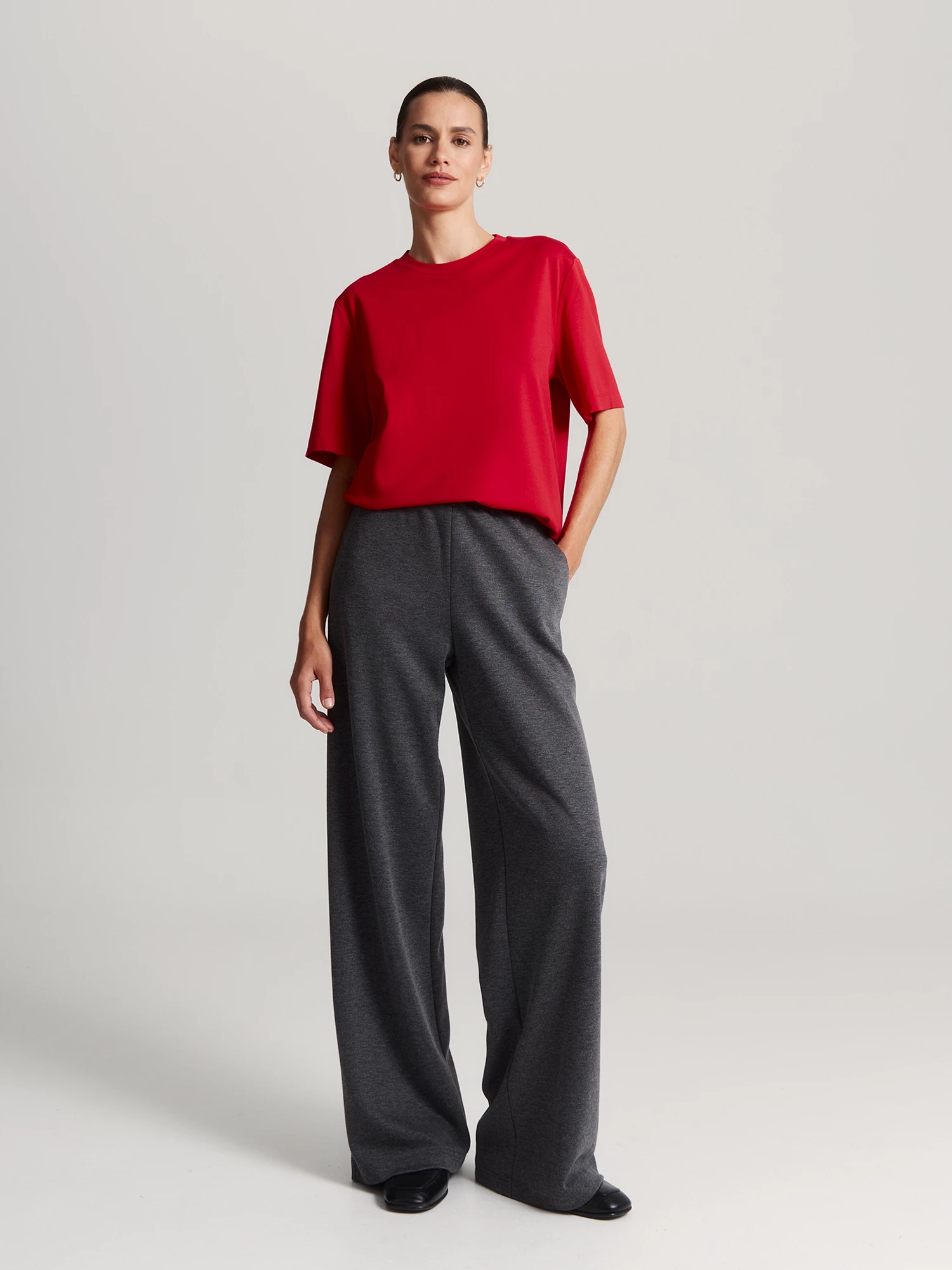 Футболка из мягкого вискозного трикотажа приятна к телу и хорошо тянется. Прямой крой с коротким втачным рукавом создаёт универсальный силуэт — если выбрать размер больше обычного, получится стильный оверсайз-образ.