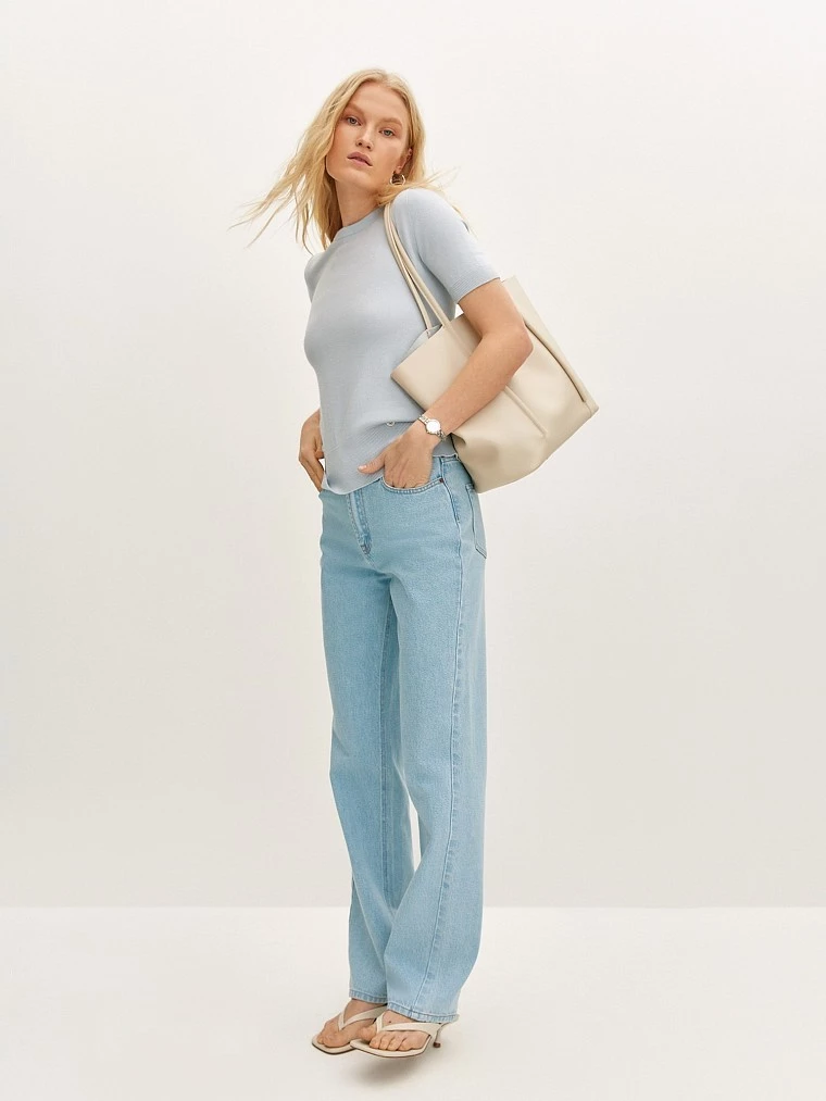 Бренд: ElisЦвет: Светло-голубойСостав: Вискоза - 51%, Полиэстер - 31%, Полиамид - 18%Артикул: TS0054VРазмер на модели: 44Коллекция: BASIC