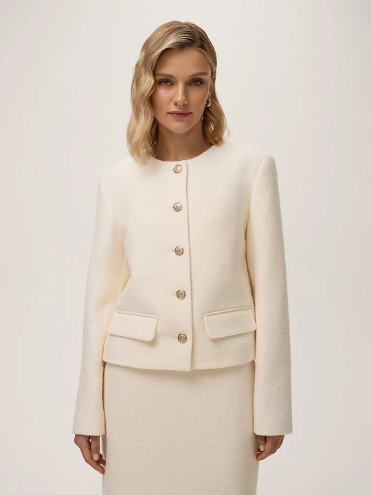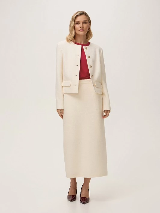 Юбка прекрасно сочетается с жакетом JC0179, и белым, и черным.