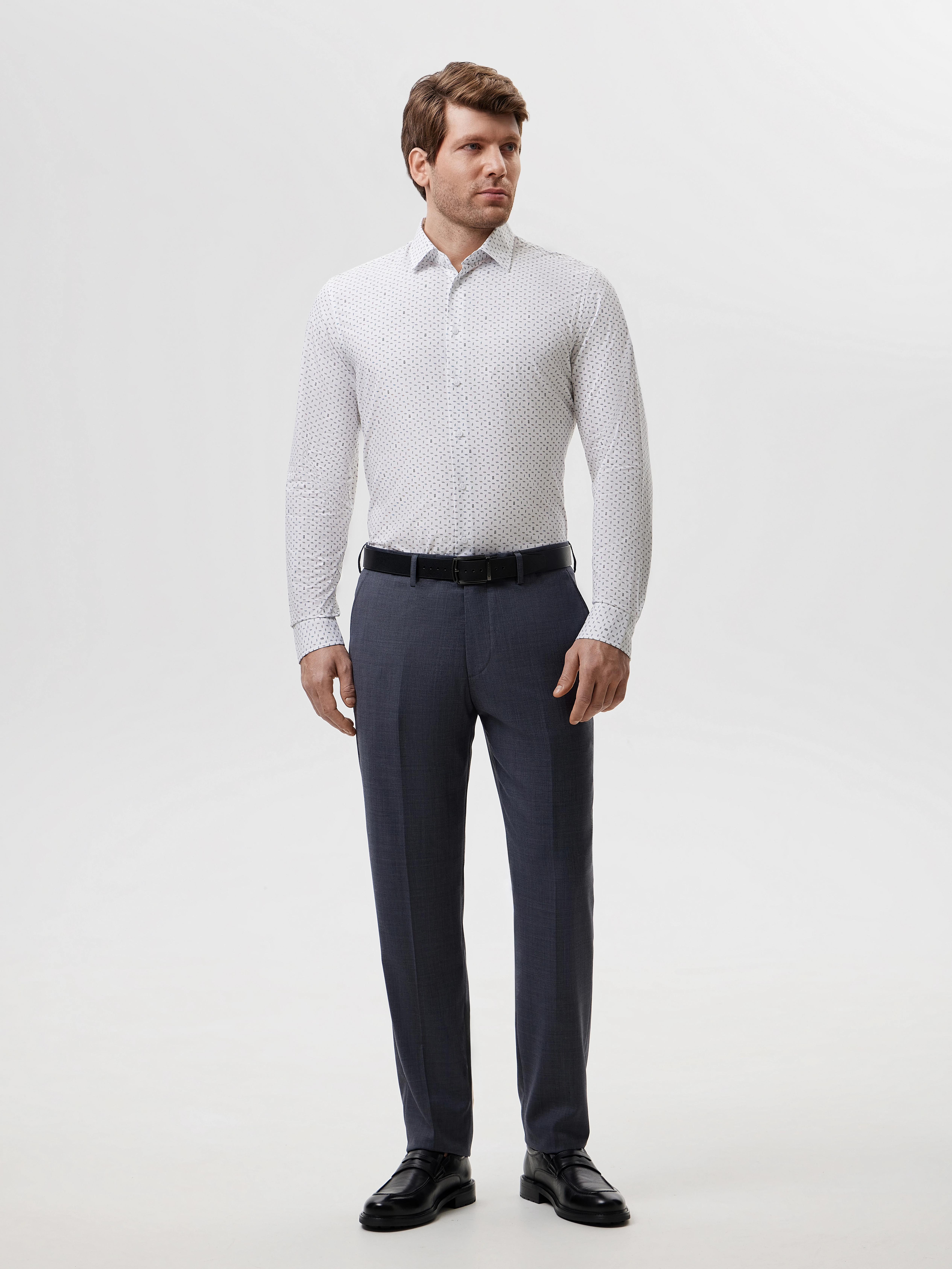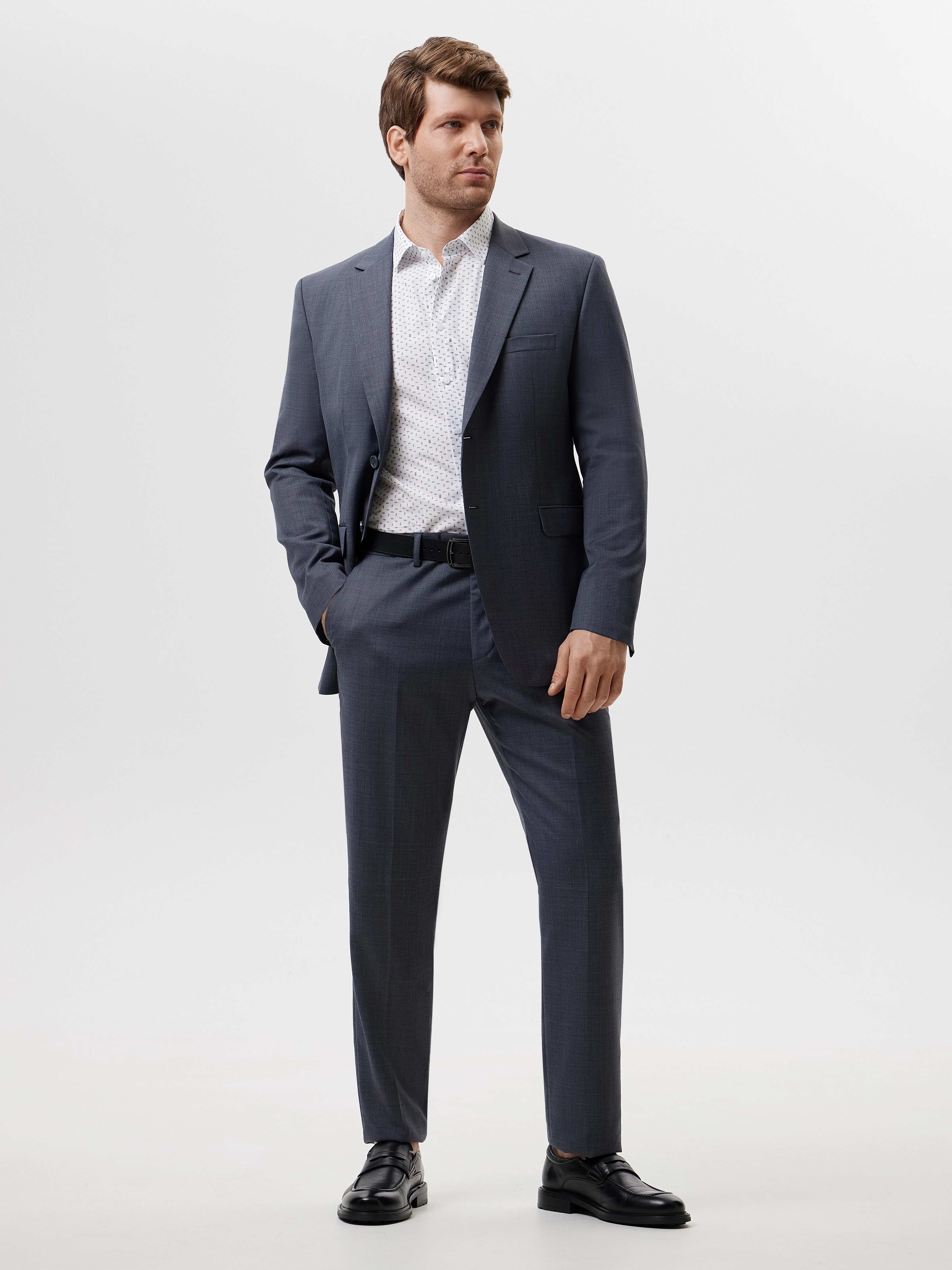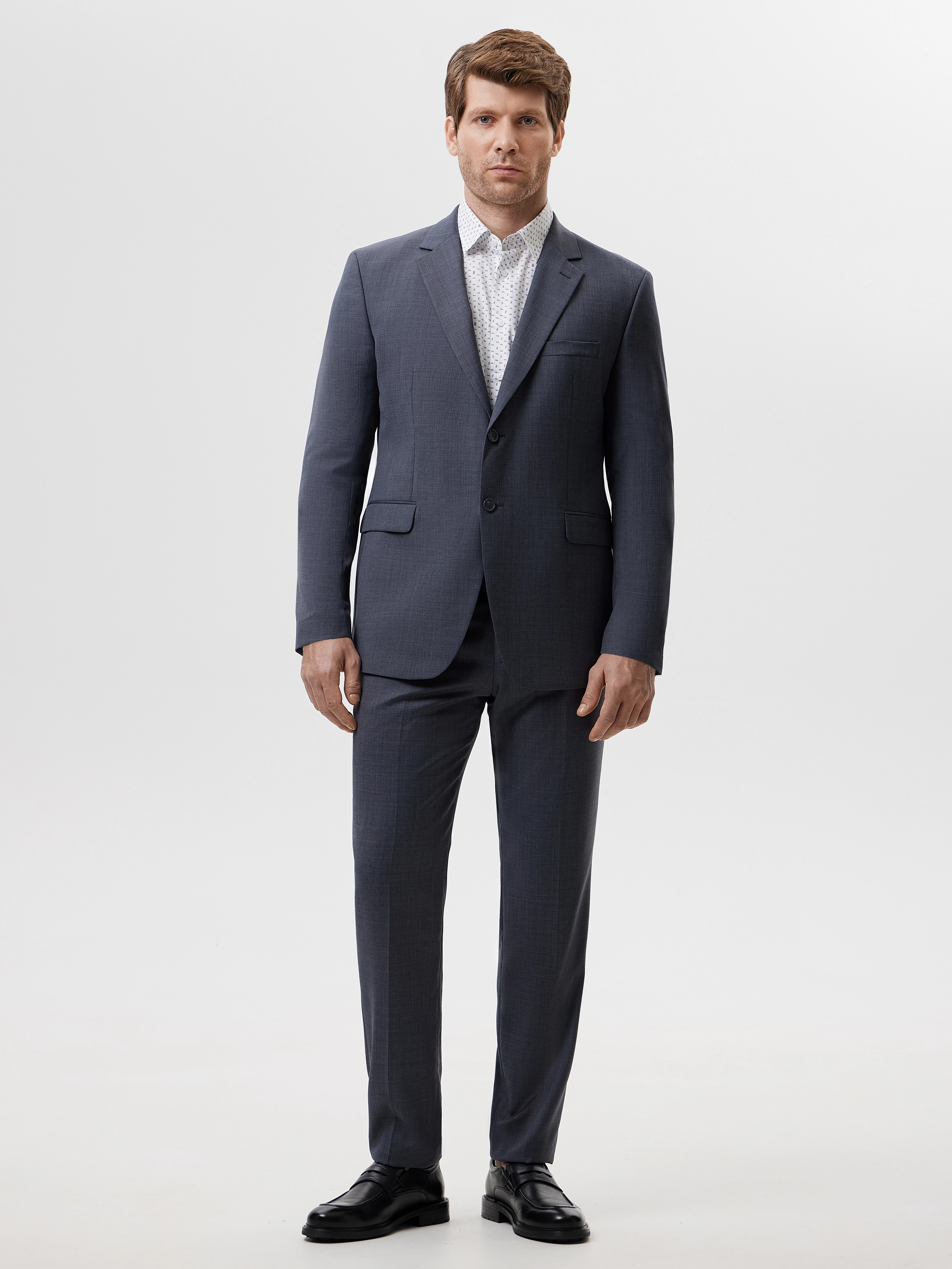 Классический английский воротник придает пиджаку строгий и утонченный вид, а закругленные борта добавляют мягкости и современности. Однобортная застежка делает модель более универсальной, позволяя легко сочетать пиджак с различными предметами гардероба. Втачные рукава обеспечивают аккуратную посадку и подчеркивают линию плеча. Для пиджака в строгом сине-сером выбран приталенный крой, не добавляющий объема. Правильная посадка обеспечена вертикальными вытачками и двумя шлицами по низу спины, завершающими боковые рельефы. В поддержку стиля модель дополнена боковыми карманами с клапанами и нагрудным с листочкой, шлицами рукавов с пуговицами. Пиджак выполнен на полной подкладке с двумя внутренними прорезными карманами в рамку. Шерстяная костюмная ткань пиджака отличается гладкой и приятной на ощупь текстурой, что обеспечивает комфорт при носке. Она обладает естественной воздухопроницаемостью, что позволяет коже дышать и предотвращает перегрев в теплую погоду. Шерсть также обладает терморегулирующими свойствами, что делает её подходящей для ношения в любое время года.