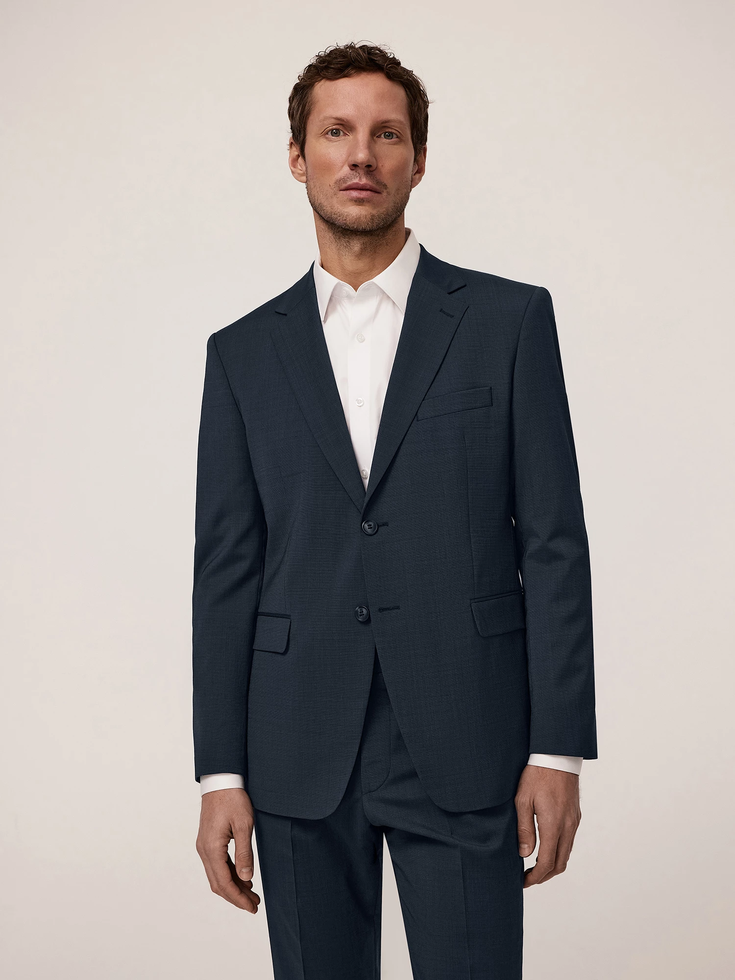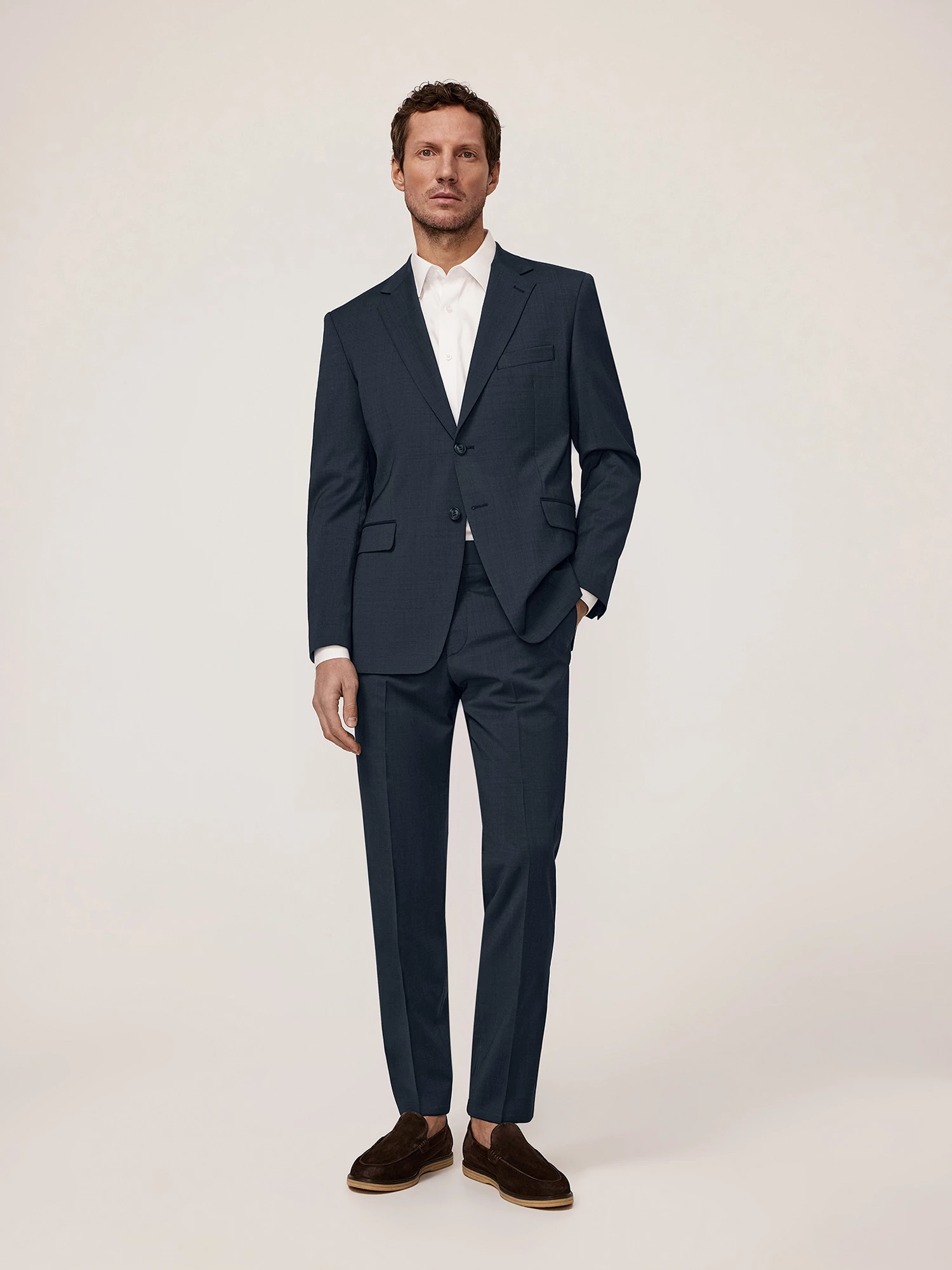 Классический английский воротник придает пиджаку строгий и утонченный вид, а закругленные борта добавляют мягкости и современности. Однобортная застежка делает модель более универсальной, позволяя легко сочетать пиджак с различными предметами гардероба. Втачные рукава обеспечивают аккуратную посадку и подчеркивают линию плеча. Для пиджака в классическом синем выбран приталенный крой, не добавляющий объема. Правильная посадка обеспечена вертикальными вытачками и двумя шлицами по низу спины, завершающими боковые рельефы. В поддержку стиля модель дополнена боковыми карманами с клапанами и нагрудным с листочкой, шлицами рукавов с пуговицами. Декоративный стежок с имитацией ручного по лацканам,борту, клапанам карманов, по листочке создает впечатление изделия, сшитого на заказ. Пиджак выполнен на полной подкладке с двумя внутренними прорезными карманами в рамку. Шерстяная костюмная ткань пиджака отличается гладкой и приятной на ощупь текстурой, что обеспечивает комфорт при носке. Она обладает естественной воздухопроницаемостью, что позволяет коже дышать и предотвращает перегрев в теплую погоду. Шерсть также обладает терморегулирующими свойствами, что делает её подходящей для ношения в любое время года.