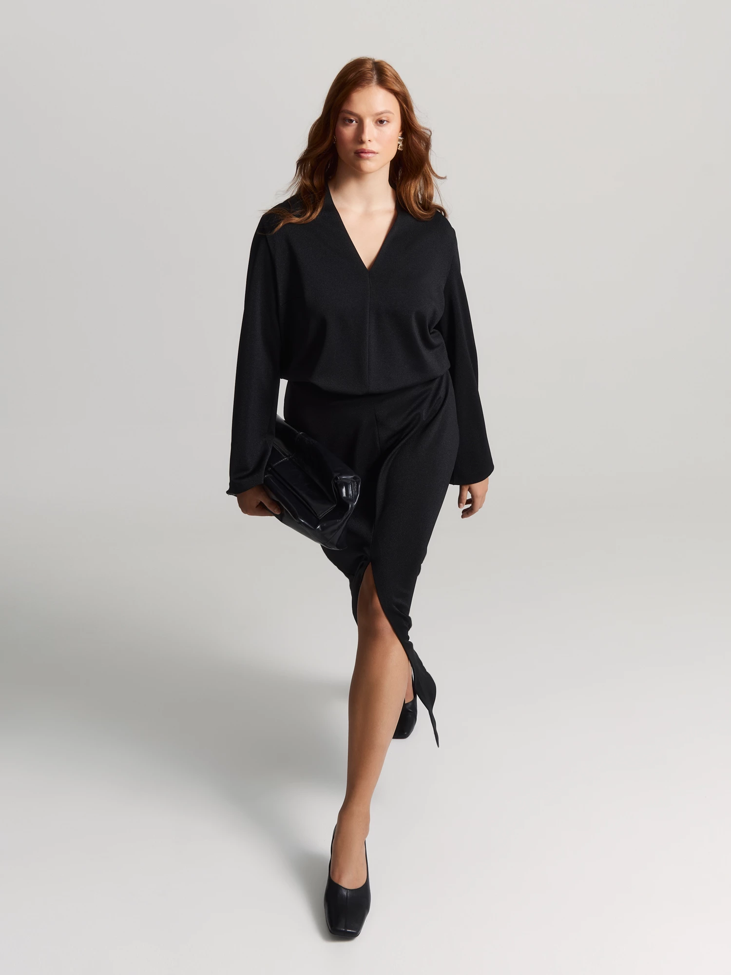 Классический чёрный цвет делает юбку универсальной. Её можно носить с блузой BL1729K как вечерний образ или с вязаным джемпером - как дневной.