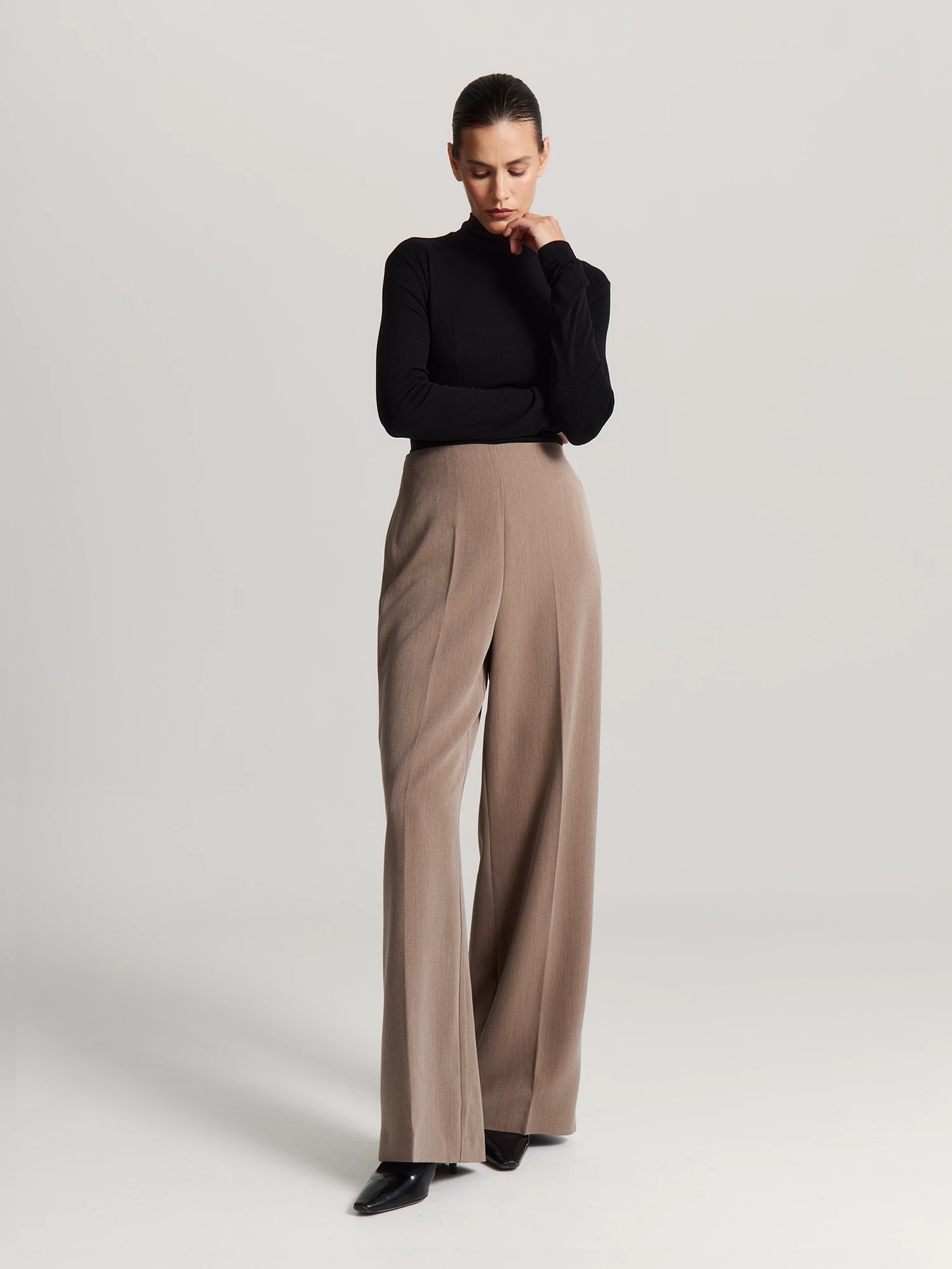 Тёплый коричневый оттенок toffee легко сочетается с разными цветами. Брюки дополнят образы для офиса, прогулок или встреч.