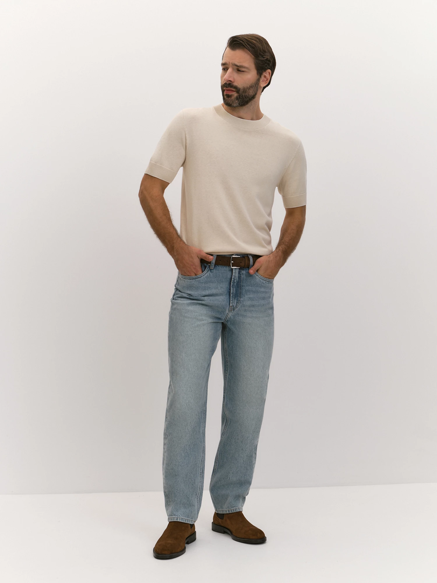 Прямые джинсы силуэта comfort — это идеальный выбор для тех, кто ценит сочетание стиля и комфорта в повседневной одежде. Слегка зауженные книзу, они создают элегантный и современный силуэт, который легко вписывается в любой гардероб. Средняя посадка обеспечивает удобство и свободу движений, а пять карманов добавляют функциональности. Модель с застежкой на молнию и брендированный болт подчеркивает внимание к деталям. Кокетка сзади обеспечивает отличную посадку, а брендированная нашивка добавляет индивидуальности. Изготовленные из 100% хлопка, эти джинсы обладают мягкой и приятной на ощупь текстурой, что делает их идеальными для ношения в течение всего дня. Хлопковый деним дышит, обеспечивая комфорт даже в теплую погоду. Приглушенный голубой цвет с легкими потертостями придает модели стильный и непринужденный вид, который легко подходит для создания разнообразных образов. Джинсы можно носить с классическими рубашками и туфлями для офисного стиля, а также с футболками и кроссовками для повседневного выхода. Они легко комбинируются с различными верхами и обувью, что делает их универсальным элементом гардероба, который станет основой для множества стильных луков.