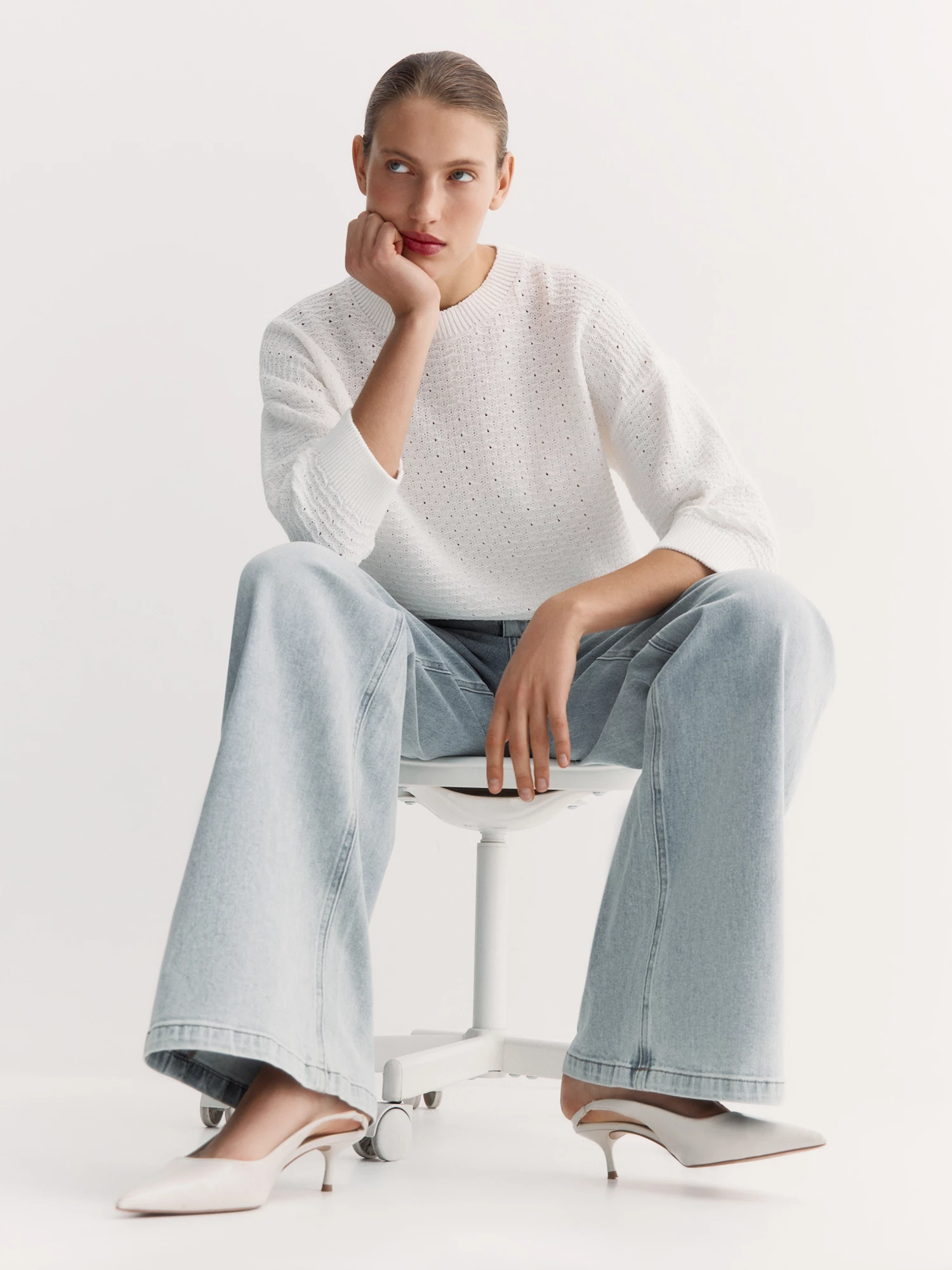 Приятный голубой оттенок и лаконичный крой позволяют носить эти джинсы с чем угодно: можно сочетать с рубашкой для нестрогого офиса, с футболкой для встречи с друзьями или с джемпером для работы и отдыха.