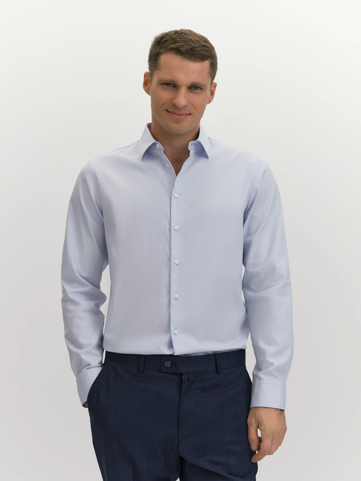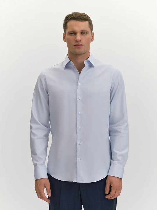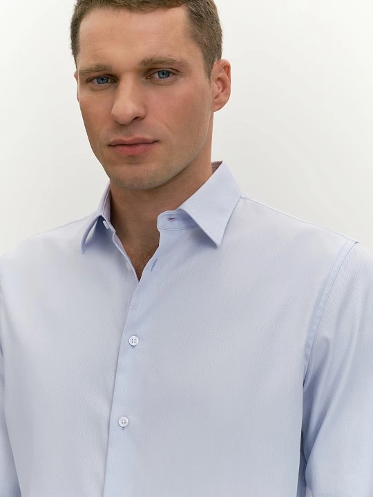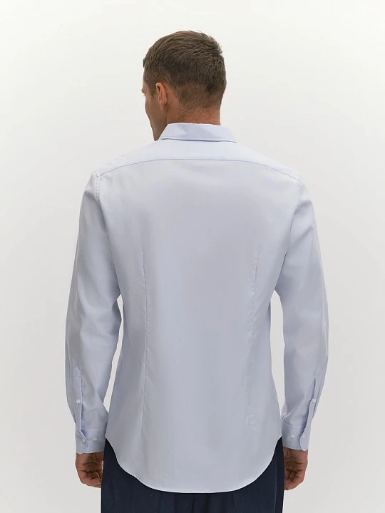 Выбрали для рубашки прилегающего силуэта slim премиальный хлопковый твил саржевого переплетения. Хлопок гипоаллергенен, хорошо дышит, удобен в эксплуатации и не требует дополнительного ухода. Прилегающий силуэт рубашки обеспечивается вертикальными вытачками, кокетка на спине гарантирует правильную посадку по плечам. Рубашка в актуальном холодном голубом оттенке универсальна и подойдет для офиса, вечеринки, праздника, выпускного, прогулки.
