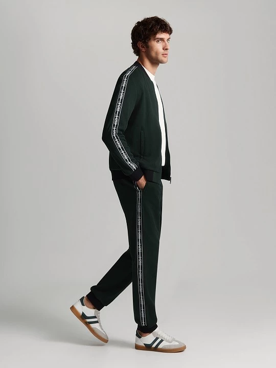 Выбрали для рубашки поло трикотаж-пике хорошей плотности в темно-зеленом оттенке "платан", насыщенном и и поддерживающем цветовую гамму капсульной коллекции. Пике легко узнать – благодаря особому переплетению нитей, на лицевой стороне изделия Вы можете увидеть рисунок, напоминающий соты. У трикотажа пике высокие эксплуатационные характеристики – он прочный, износостойкий, очень хорошо пропускает воздух и впитывает влагу за счет высокого содержания хлопка. Поло комфортного силуэта regular выполнено без традиционной планки, вместо нее сделали застежку на молнию, вместе с белой отделкой воротника, белая молния создает интересный акцент. Вязаный воротник и манжеты придают модели аккуратный и завершенный вид. Изделие декорировано небольшим металлическим брендированным украшением.