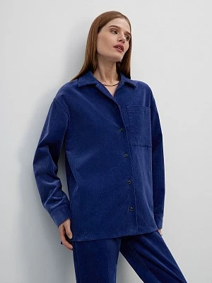 Рубашка свободного силуэта из актуального в осенне-зимний период вельвета темно-синего цвета. Мягкий отложной воротник, разрезы по низу и накладной карман на груди делают ее универсальной основой для создания стильного делового образа на работу и повседневную встречу. Можно носить как самостоятельный предмет гардероба, так и поверх топа или водолазки. Ткань, выполненная из 100% хлопка, обеспечит комфорт в течение всего дня.