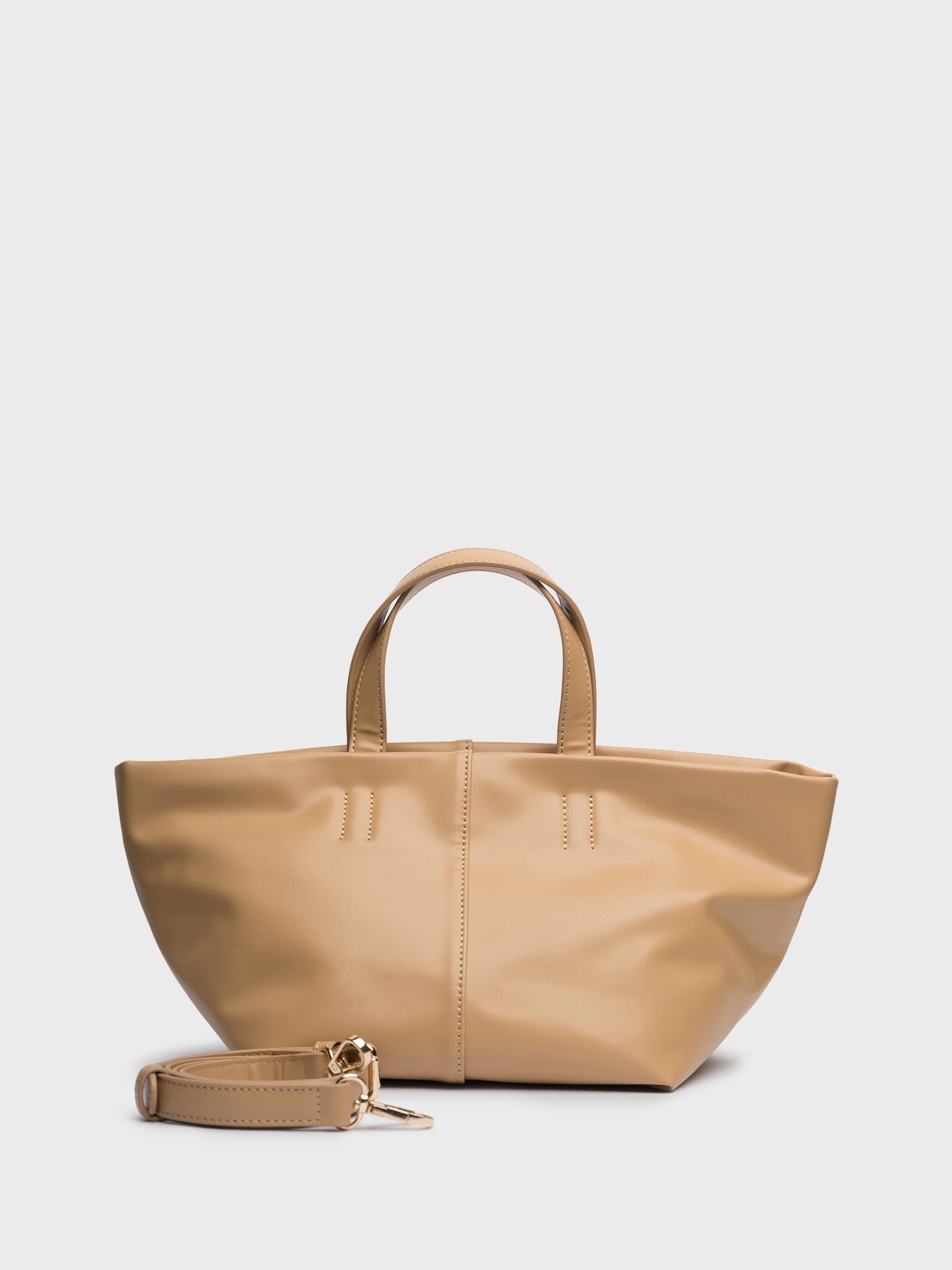 Трудно представить современный базовый гардероб без tote bag. Удобная, вместительная форма такой сумки позволяет адаптировать ее и в офисный, деловой стиль, и взять с собой на шопинг. Наличие коротких ручек и съемного длинного ремня с возможностью регулировки также расширяет возможности тоута, позволяет носить его и в руках, и на плече. Такую модель в светлом коричневом легко сочетать с поясами и ремнями в ярких или базовых цветах, она подойдет на весну, лето, осень, на подарок маме, сестре, подруге.