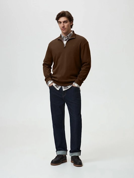 Свитшот с возможностью расстегивания воротника-стойки станет незаменимым элементом гардероба. Модель выполнена из мягкого трикотажного полотна, состоящего из согревающей шерсти, тактильно приятного хлопка и прочных поливолокон.