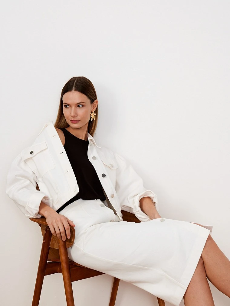 Топ из эффектной атласной ткани универсального чёрного цвета. Модель минималистичного кроя, полуприлегающего силуэта, с прямым вырезом переда и спинки. Такой силуэт в сочетании с цветом выгодно подчеркивает линию плеч. Стильная базовая вещь, которая сочетается как с деловым так и неформальным гардеробом. Идеальна в комплекте с широкими черными брюками из той же капсулы.