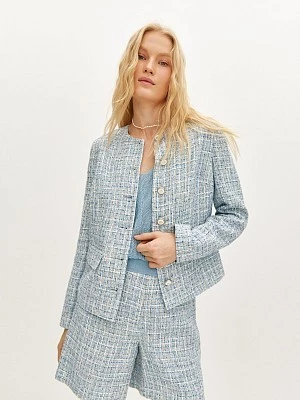 Топ с жаккардовым переплетением выполнили из пермиальной итальянской пряжи с деликатным блеском на основе нежной легкой вискозы, нежно-голубого оттенка. Модель прямого силуэта, с V-образным вырезом горловины и широкими бретелями. Комфортный пояс из эластичного подвяза в мелкий рубчик обеспечивает комфортную посадку. Образ можно дополнить трендовыми шортами.