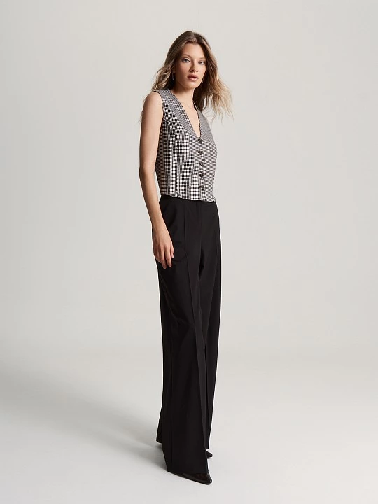 Бренд: ElisЦвет: Черно-бежевыйСостав: Верх:Полиэстер - 75%, Овечья шерсть - 25%.Подкладка:Полиэстер - 55%, Вискоза - 45%Рост: 177Артикул: TA0011Параметры модели: 85 - 61 - 89Размер на модели: 44Коллекция: ВА ELIS PROFFESIONAL PALETTE