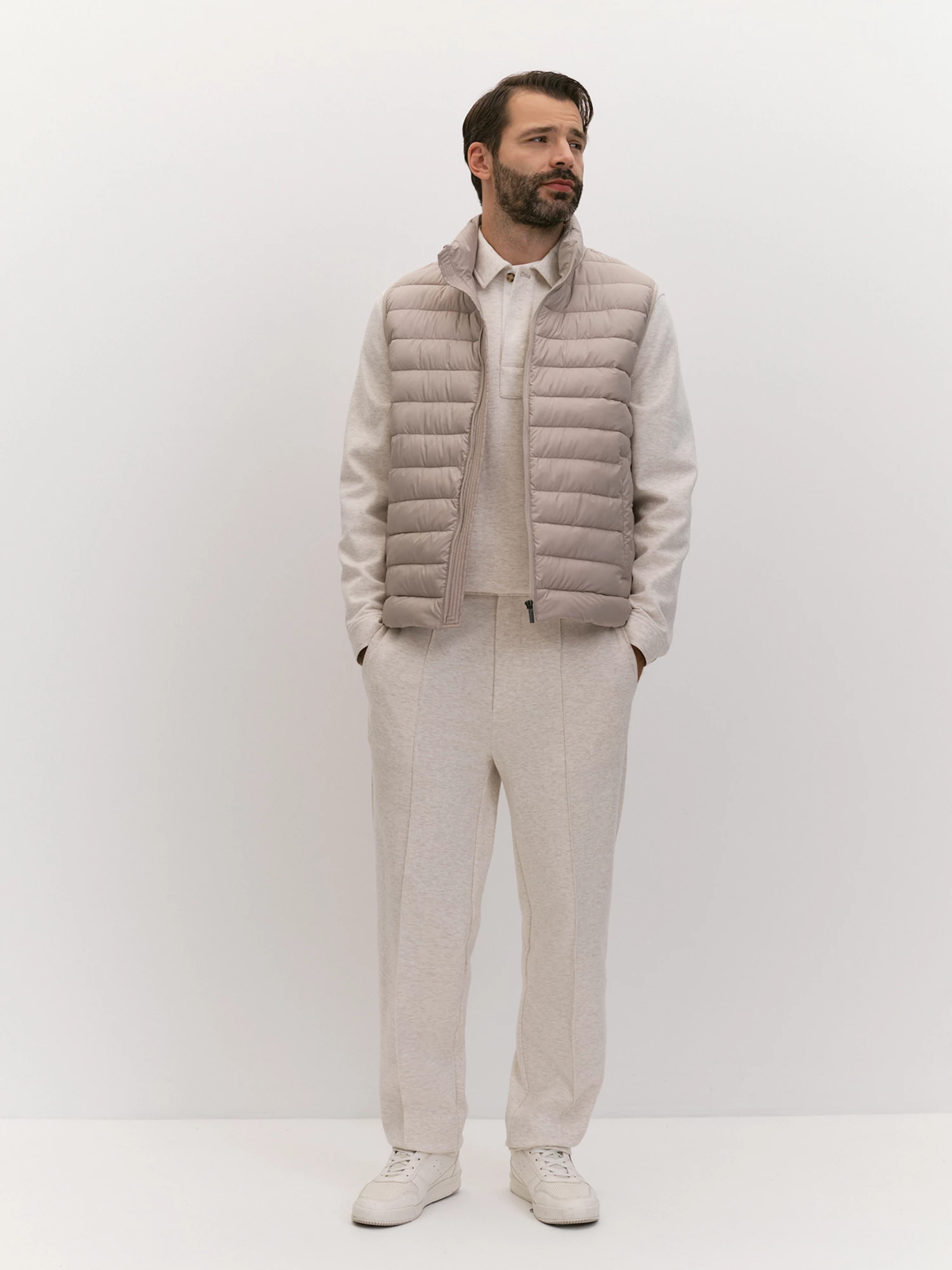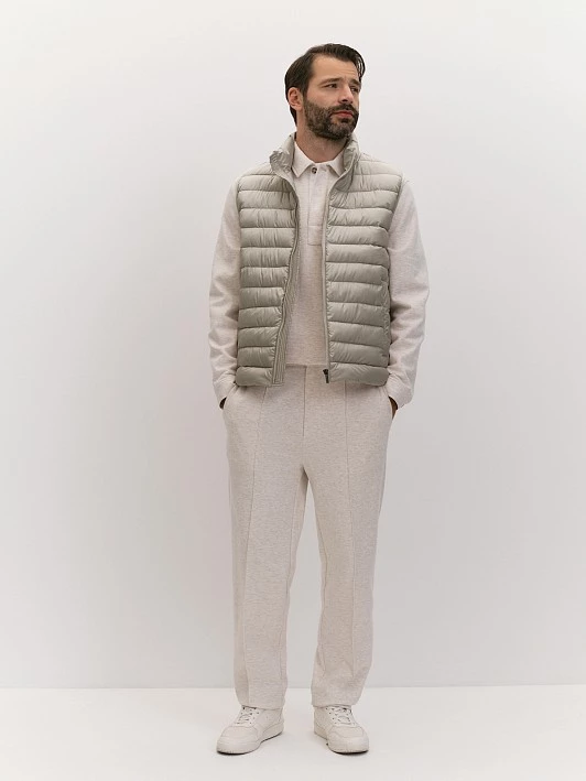 Жилет-безрукавка силуэта slim с горизонтальной стежкой подойдет для завершения образа в спортивном и кэжуал стиле. Создали модель легкой, без капюшона, но теплой. Закрытый воротник-стойка, внутренний ветрозащитный клапан, а также корд-система с фиксаторами, сконструированная по низу изделия, хорошо защищают от холода. Застегивается модель на качественную молнию с брендированным пуллером. Жилет выполнен с прорезными карманами с листочкой, имеющими вертикальный вход и застежку на кнопку, для дополнительного удобства сконструирован внутренний карман. Выбрали для модели качественную плащевую ткань с влагозащитной пропиткой и утеплили ее синтепухом. Синтепух - это современный высокотехнологичный наполнитель, отличающийся легкостью, упругостью и хорошими теплоизоляционными свойствами. Благодаря горизонтальной стежке, выполненной на нашем собственном производстве, наполнитель правильно распределен внутри изделия и надежно зафиксирован. Светлый весенний бежево-серый хорошо сочетается с денимом и моделями из трикотажного полотна капсулы PERFECT BASE.