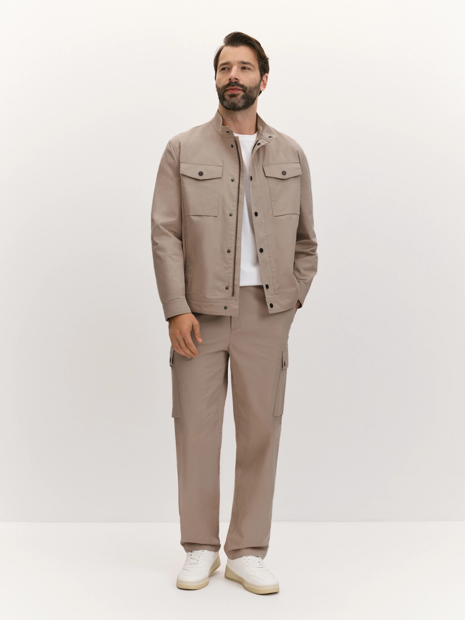 Куртка силуэта regular обеспечивает хорошую защиту от прохладного весеннего ветра благодаря актуальному в этом сезоне отрезному воротнику-стойке, застежке на молнии, дополненной ветрозащитным клапаном на кнопках и планке по низу изделия, обеспечивающей комфортное прилегание по бедрам и имеющей возможность регуляции. Дополнили модель вертикальными рельефами и кокеткой по спине для лучшей посадки, а также накладными функциональными карманами с клапанами для необходимых мелочей. Темные матовые кнопки контрастны к основному цвету и придают изделию завершенный вид. Выбрали для ветровки турецкую ткань плотного переплетения на основе хлопка. Хлопок обеспечивает естественность, воздухопроницаемость и комфорт, а небольшой процент эластана придаёт изделию формоустойчивость, что позволяет свободно двигаться. Грейдж — grey(серый) + beige(бежевый) = greige - нейтрален, любим дизайнерами и находится вне времени и трендов, что позволяет ему быть безнаказанно универсальным.