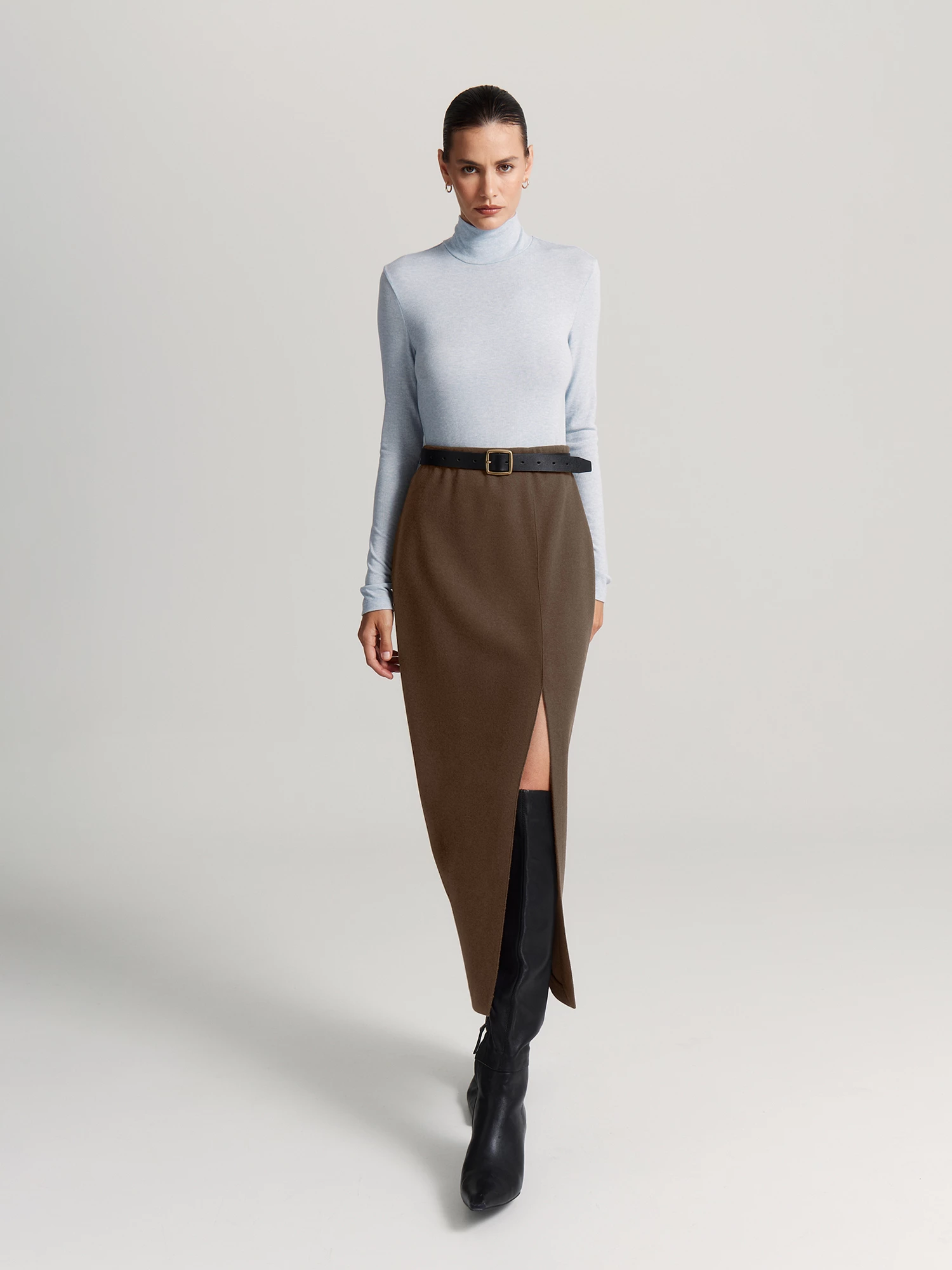 Отрезной воротник-стойка и длинные втачные рукава создают аккуратный силуэт, а лаконичный дизайн делает водолазку универсальной базой для многослойности.