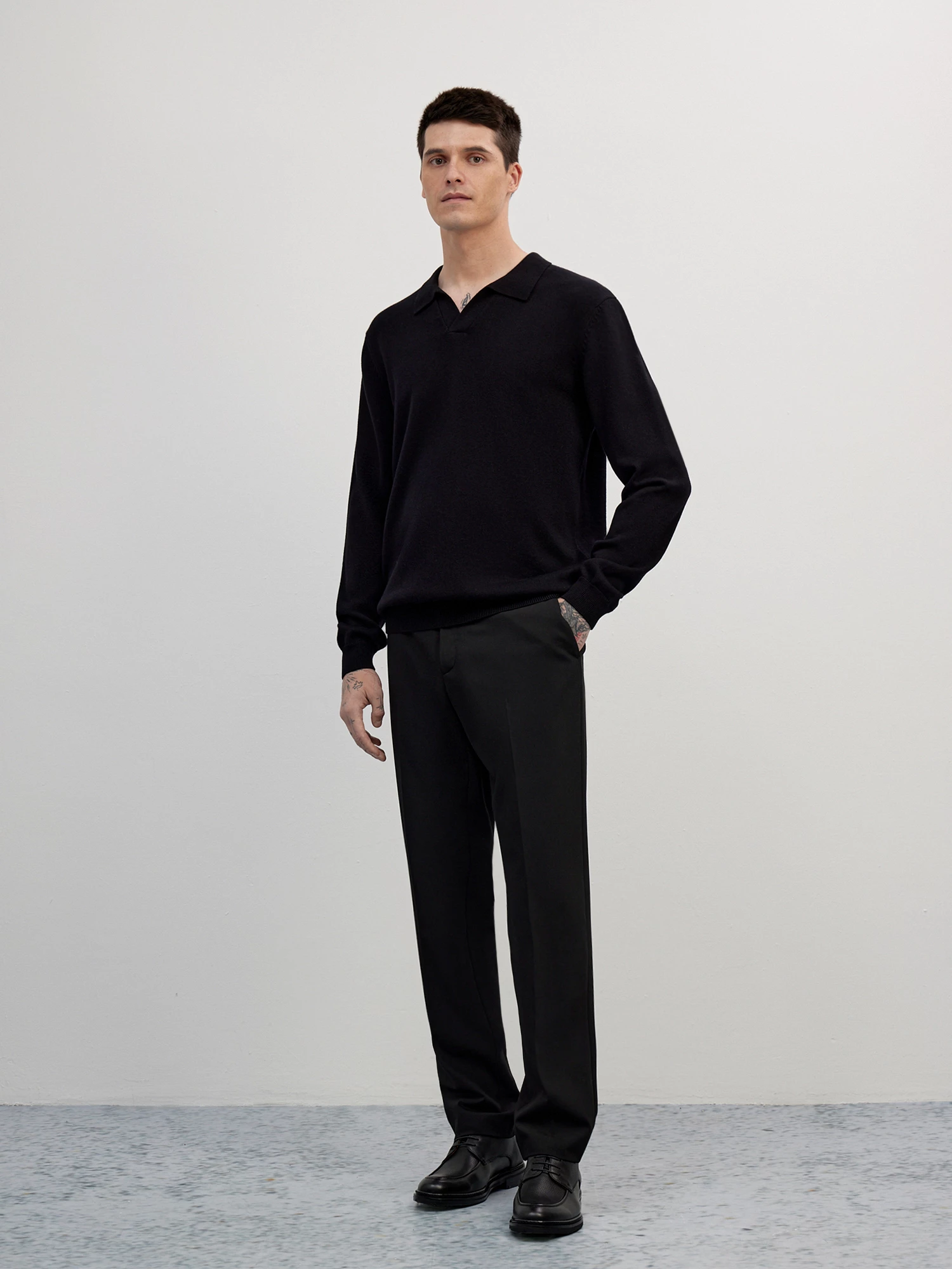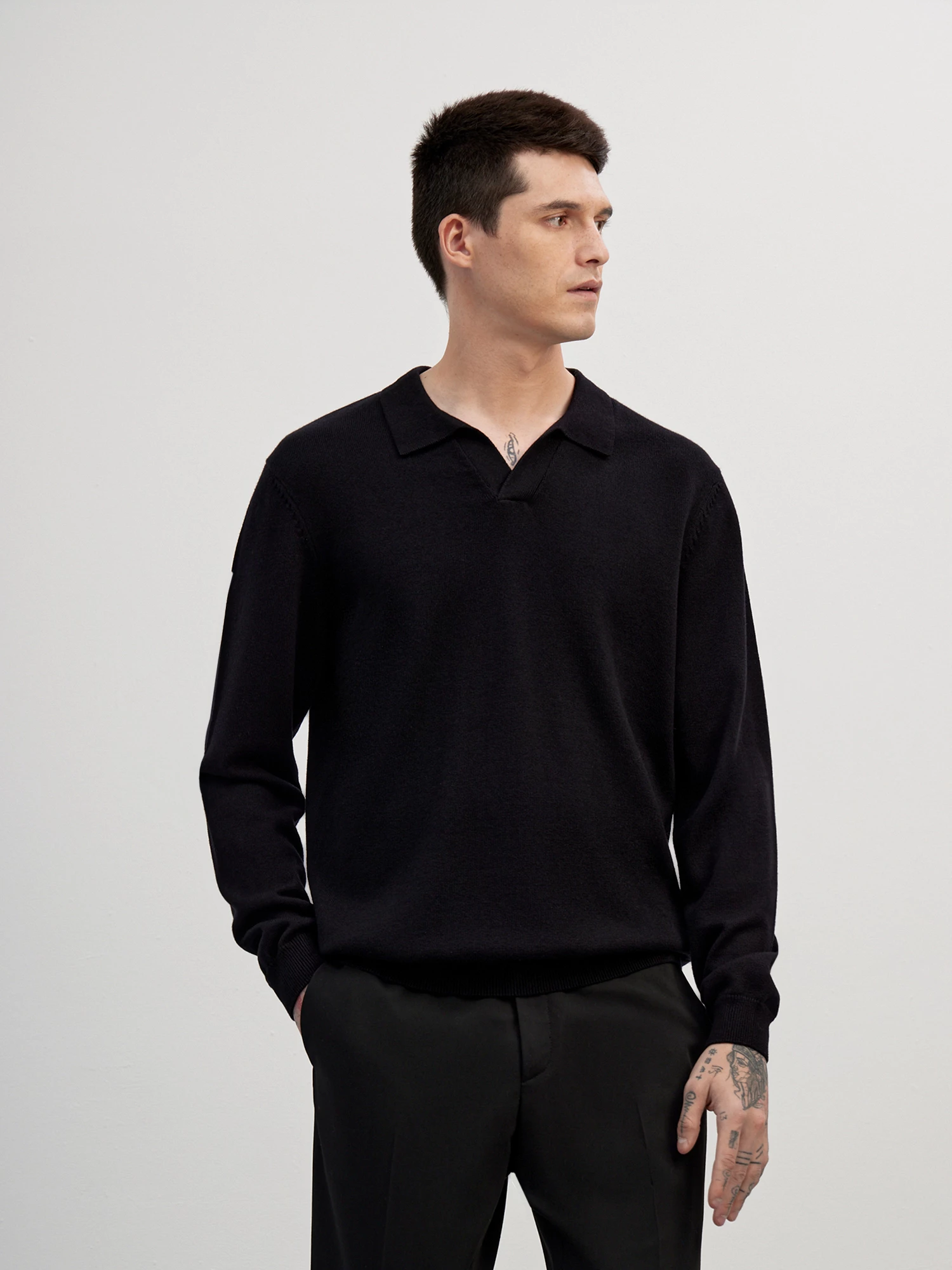 Вязаный джемпер с оригинальной V-образной горловиной и отложным воротником в стиле поло. Лаконичная база, которая подойдет для любого мужского гардероба. Средней плотности трикотаж из отборных волокон премиального хлопка и мягкой овечьей шерсти создает ровную фактуру и помогает изделию сохранять тепло. Благодаря прямому крою и резинке по низу изделия, джемпер отлично сядет на любой тип фигуры.
