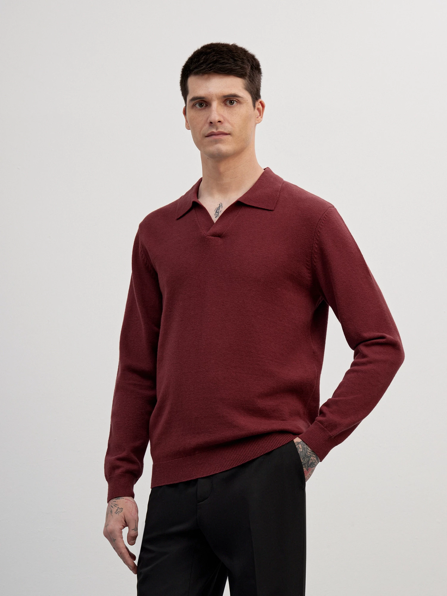 Вязаный джемпер с оригинальной V-образной горловиной и отложным воротником в стиле поло. Лаконичная база, которая подойдет для любого мужского гардероба. Средней плотности трикотаж из отборных волокон премиального хлопка и мягкой овечьей шерсти создает ровную фактуру и помогает изделию сохранять тепло. Благодаря прямому крою и резинке по низу изделия, джемпер отлично сядет на любой тип фигуры.
