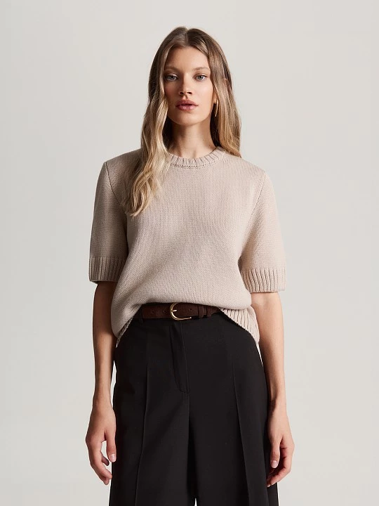 Выбрали для модели короткий рукав и аккуратный круглый вырез - форму, актуальную для переменчивой осенней погоды. Использование высокоточного оборудования гарантирует качество исполнения, а особые эластичные швы делают джемпер невероятно комфортным и уютным.