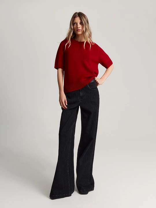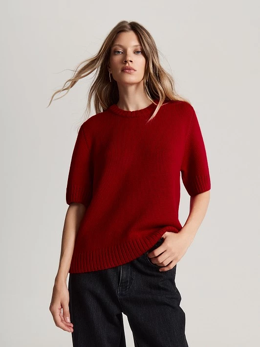 Джемпер гладкой вязки в акцентном красном цвете станет универсальной базой для Вашего гардероба. Он выполнен из качественной пряжи на основе шерсти мериноса, мягкой, эластичной и тактильно приятной.