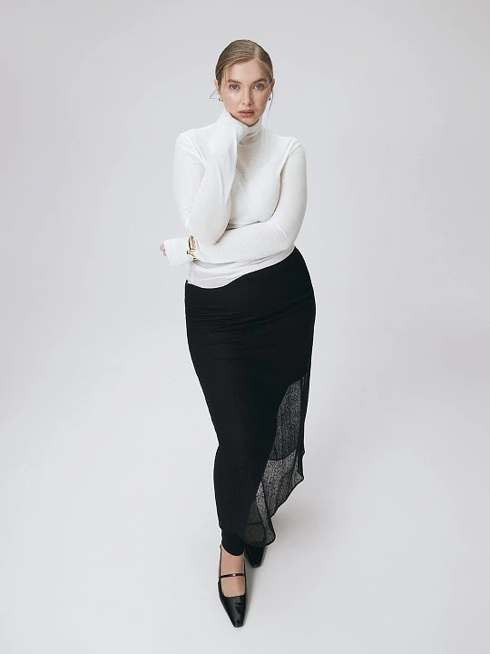 Юбка отличается слегка расклешенным кроем и разностью длин основной ткани и подкладки. Полная длина модели - миди, а благодаря укороченной подкладке актуальный тренд сезона - прозрачность - заявляет о себе. Юбка выполнена из мягкой нейлоновой кружевной сетки, комплементарной к коже тела. Ажурное полотно турецкого производства тонкое, но прочное, благодаря полиамиду, который продлевает срок службы и эластану, призванному сохранять форму изделия. Дополнительный комфорт обеспечивает тактильно приятная вискозная подкладочная ткань. Кружевные модели вышли за пределы вечерних образов и являются полноправными участниками если не базового, то повседневного гардероба. Выбор наших стилистов - эффектное сочетание стильной черной юбки с белой базовой футболкой TS0100K - образ, который подойдет для неформальных мероприятий.