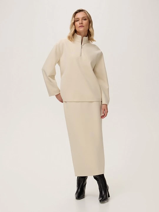 Юбка лаконичной облегающей формы выполнена в длине миди. Создали ее без застежки, без отрезного пояса, с резинкой по талии. Тактильно приятный, саржевого (диагонального) переплетения плотный эластичный трикотаж с вискозой и шерстью с изнаночной стороны отличается уютным фланелевым эффектом. Recycled polyester не только продляет срок службы изделия, он экологичен, так как снижает потребность в добыче новых ресурсов. Приобретая одежду, в составе которой присутствует переработанный полиэстер, Вы можете быть уверены, что такой выбор одежды является экологически ответственным и оказывает минимальное воздействие на окружающую среду. Ткань «дышит», благодаря вискозе, и согревает с помощью овечьей шерсти. Модель в приятном кремовом оттенке подойдет для прогулки, школы, свидания, офиса.