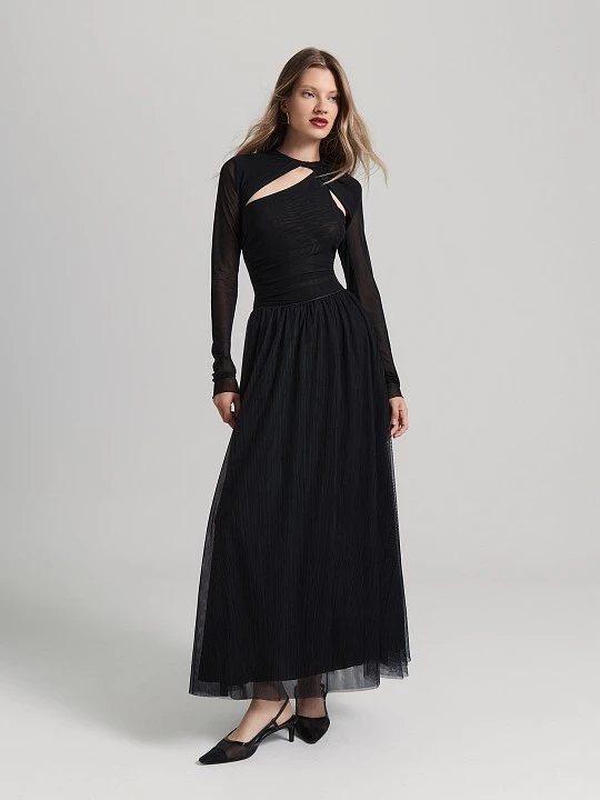 Юбка из сетки вышла на новый уровень актуальности в длине макси. Серьезная и скромная, с подкладкой почти до самого низа, она остается невероятно воздушной.