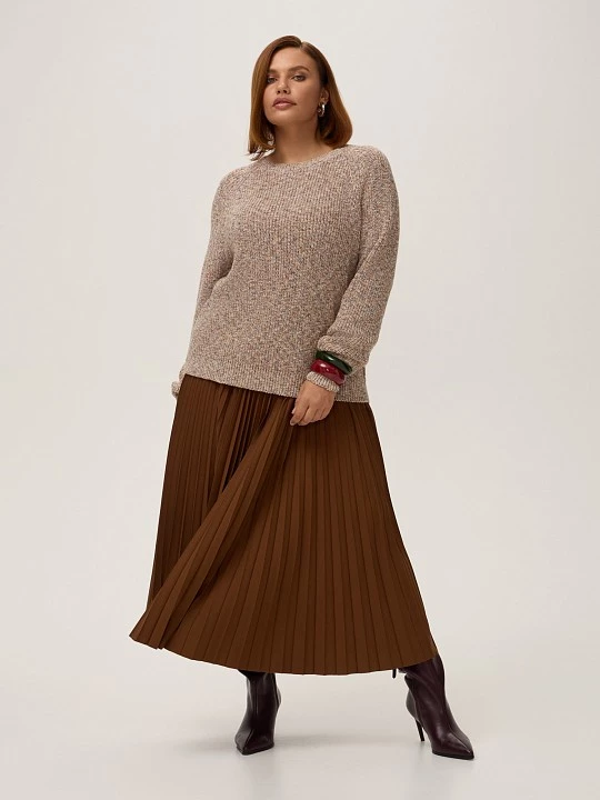 Юбка длины миди с радиальным, или расходящимся, гофре в насыщенном коричневом оттенке – настоящая находка для ценительниц безупречной посадки. Роскошные радиальные складки создают эффект объемного движения, играя бликами света при каждом шаге и превращая простую прогулку в изысканный перформанс, в то время как благородный глубокий коричневый цвет придает образу ноту аристократической изысканности и теплой глубины. Тонкий отрезной пояс подчеркивает изящную талию, создавая женственный акцент, а потайная молния сбоку сохраняет безупречную чистоту линий, делая силуэт идеально гармоничным. Ткань тактильно приятной плотности обеспечивает идеальную форму складкам, позволяя им сохранять свою выразительность в течение всего дня, не теряя первоначального объема и структуры, а также дарит приятное ощущение качества и статусности при ношении. Юбка будет уместна в самых разных ситуациях: от строгого офисного лука с лаконичным жакетом до романтического образа с кружевным топом, от интеллектуального стиля с объемным свитером до вечернего выхода с шелковой блузой. Ее универсальная миди-длина визуально вытягивает силуэт, а благородный коричневый цвет делает модель идеальной базой для любых цветовых сочетаний – от нежных пастельных тонов до смелых ярких акцентов.