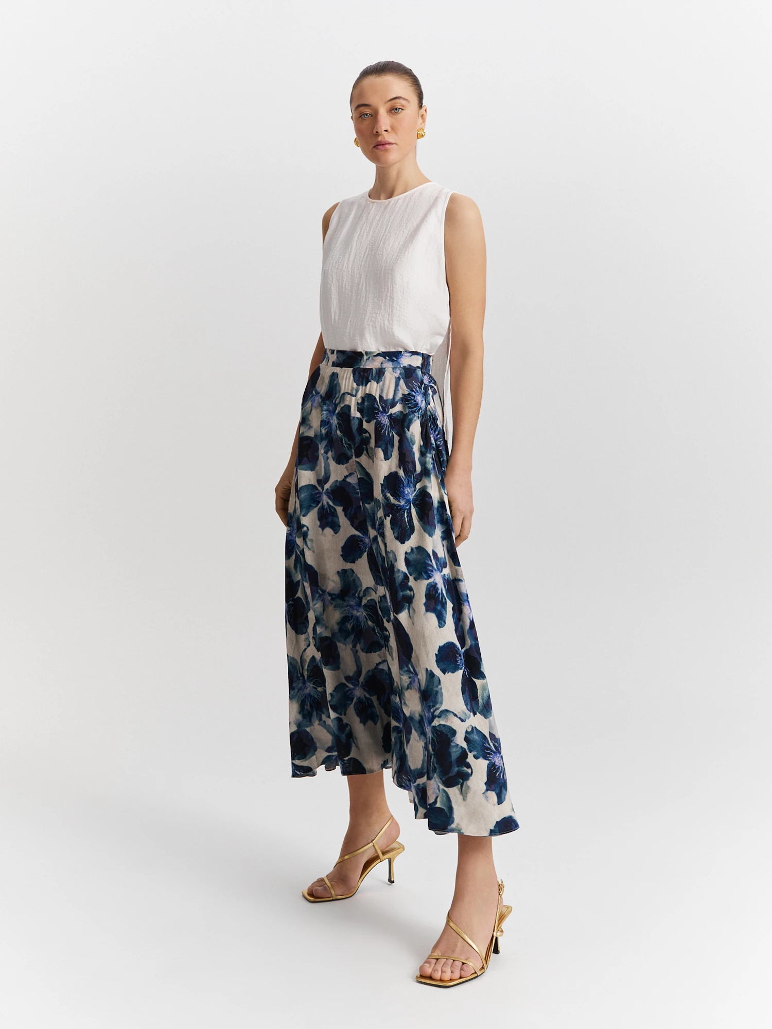 Бренд: ElisЦвет: Бежево-синийСостав: Вискоза - 73%, Лен - 27%Артикул: SK0437Размер на модели: 44Коллекция: ЛЕТНИЕ ИСТОРИИ