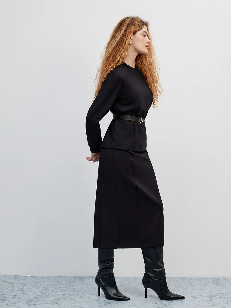 Бренд: ElisЦвет: ЧерныйСостав: Верх:Полиэстер - 62%, Вискоза - 28%, Овечья шерсть - 5%, Спандекс - 5%.Подкладка:Полиэстер - 55%, Вискоза - 45%Артикул: SK0360Размер на модели: 44Коллекция: COZY AUTUMN
