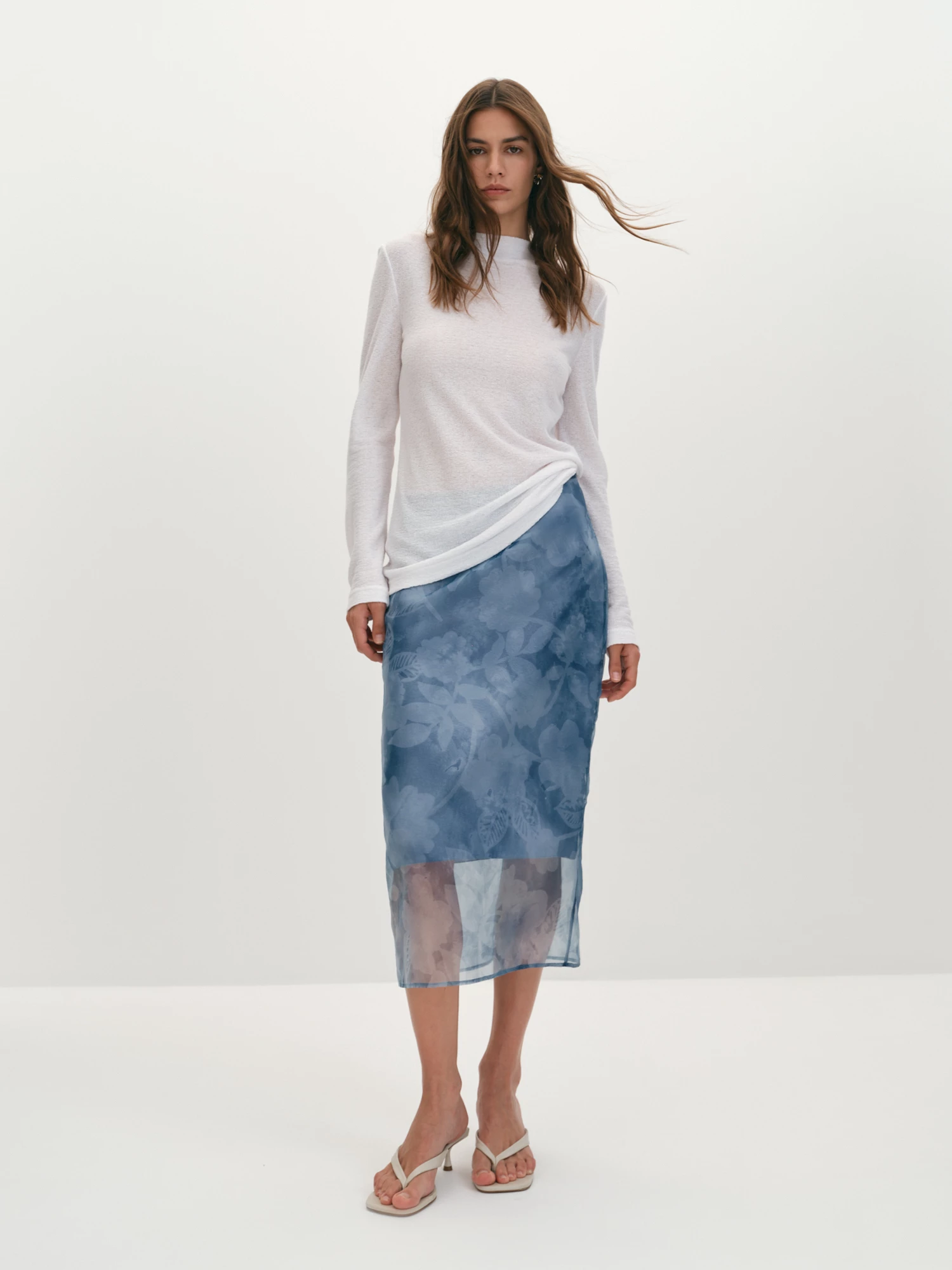 Юбка длины миди отличается полуприлегающим кроем, который подчеркивает фигуру, и разностью длин основной ткани и подкладки, что создает интересный визуальный эффект. В этом сезоне особое внимание уделяется прозрачности, и наша юбка отражает этот макротренд, добавляя нотку легкости и романтики в Ваш образ. Рисунок на ткани выполнен методом трафаретной печати, что позволило создать уникальный акварельный эффект. Краска наносится на фон, оставляя узор неокрашенным, что придает юбке оригинальность. Флоральный рисунок, благодаря фактуре ткани, выглядит особенно эффектно и привлекает внимание. Юбка оснащена талиевыми вытачками, которые обеспечивают идеальную посадку и комфорт при носке. Разрез сзади добавляет динамичности и свободы движений, позволяя уверенно шагать. Обработка кантом по линии талии придает модели аккуратный и завершенный вид. Застежка на потайную молнию делает юбку еще более элегантной, скрывая все элементы фурнитуры и сохраняя чистоту линий. Изготовленная из высококачественной органзы, юбка обладает воздухопроницаемыми и гладкими свойствами, что делает ее идеальной для теплой погоды. Органза устойчива к износу, что гарантирует долговечность изделия. Подкладка из тонкого трикотажа на основе вискозы обеспечивает дополнительный комфорт и приятные ощущения при носке, предотвращая прилипание к коже. Полупрозрачные модели уже давно вышли за пределы вечерних нарядов и стали неотъемлемой частью повседневного гардероба. Их можно легко комбинировать с различными топами, блузами и аксессуарами, создавая как кэжуальные, так и более нарядные образы. Эта юбка станет отличным дополнением к Вашему стилю, подчеркивая индивидуальность и вкус.