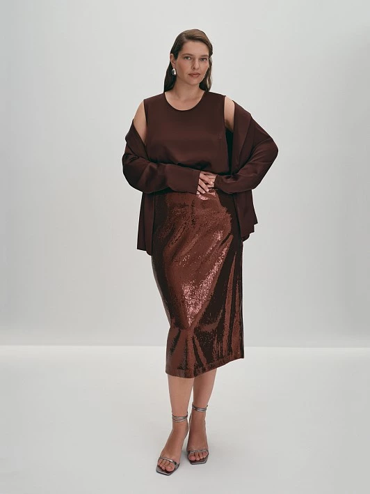 Бренд: LalisЦвет: КоричневыйСостав: Верх:Полиэстер - 100%.Подкладка:Полиэстер - 100%Артикул: SK0485KРазмер на модели: 50Коллекция: GLOW OF THE NIGHT